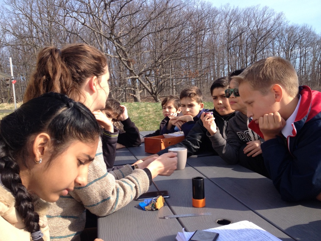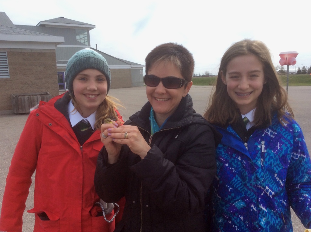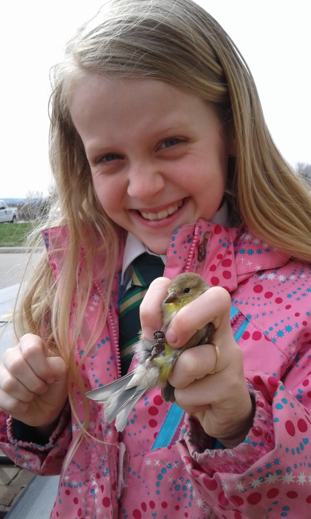 We had a really nice mixture of students out today, the regulars and a lot of new faces from kindergarten to grade six. After the nets closed a large group of us hung out in the Field Station looking through the field guides and learning about Golden Winged Warblers. Janice was able to tell them about her experiences studying the birds and their hybridization with Blue Winged Warblers. I shared my experience last week up in Orillia attending a presentation by Emily Rondel for the Orillia Naturalist Club.