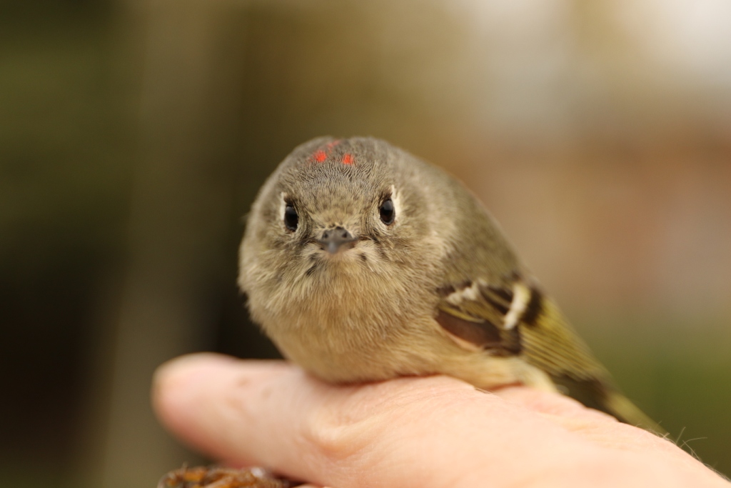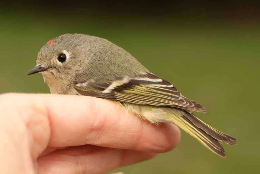 It was another great day at the school, not incredibly busy banding-wise but there were eager birders checking out the action by the Field Station all day long. The female and male Canada Goose came by for breakfast, the male chose to perch atop of the Field Station keeping his eye on his territory for quite some time to the delight of my students. I also spotted two cottontail rabbits by the Field Station, and a white tailed deer near the net lanes.