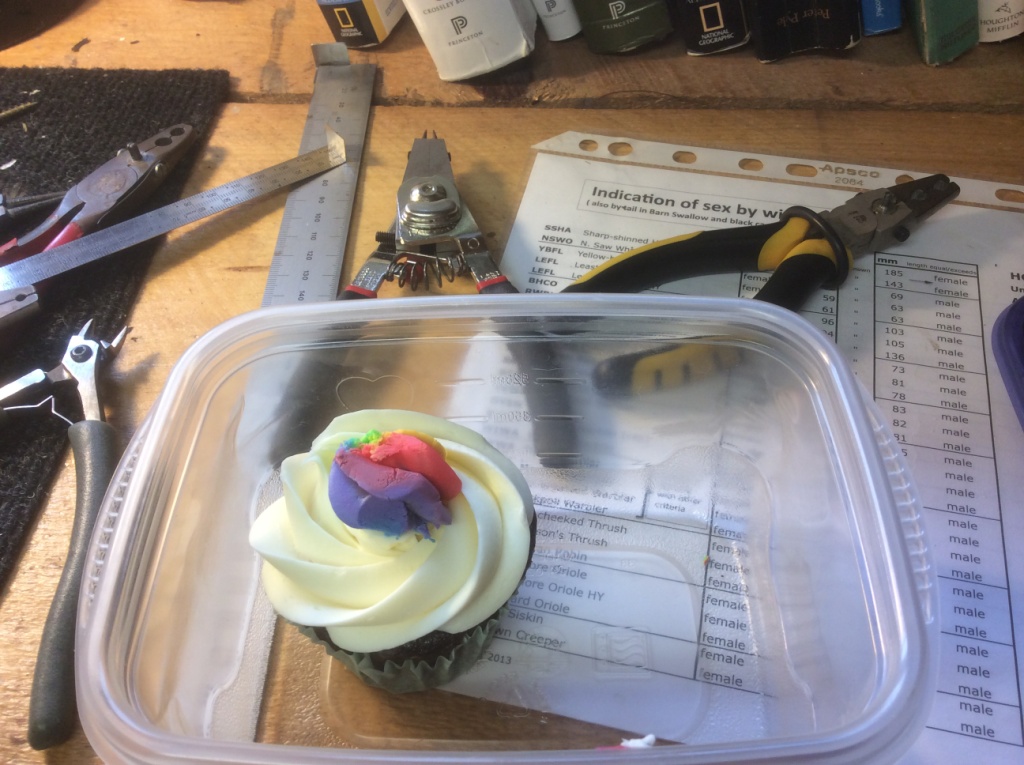 Today we had a special retrap: a male White-Breasted Nuthatch originally banded at the school as a second year back on June 4th 2013 by the one and only Joanne Fleet! The students thought that was pretty special, and we imagined all the places that bird has been and the challenges (both natural and man made) that it has faced.