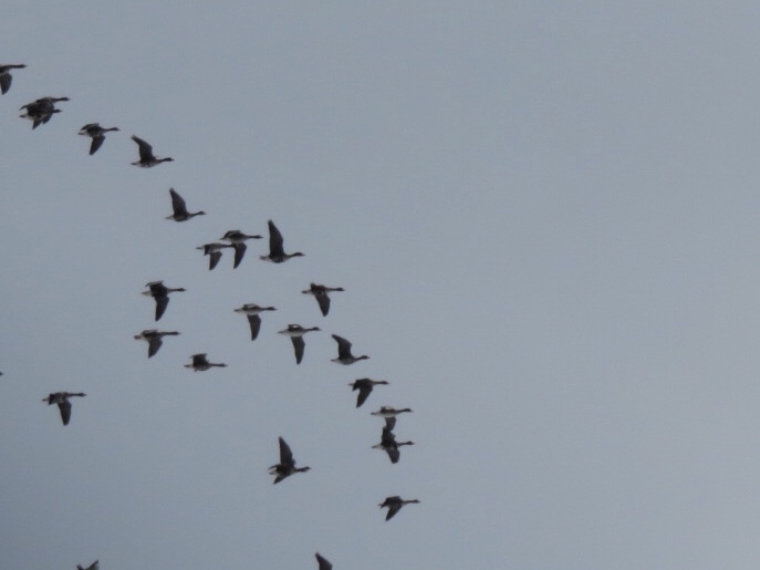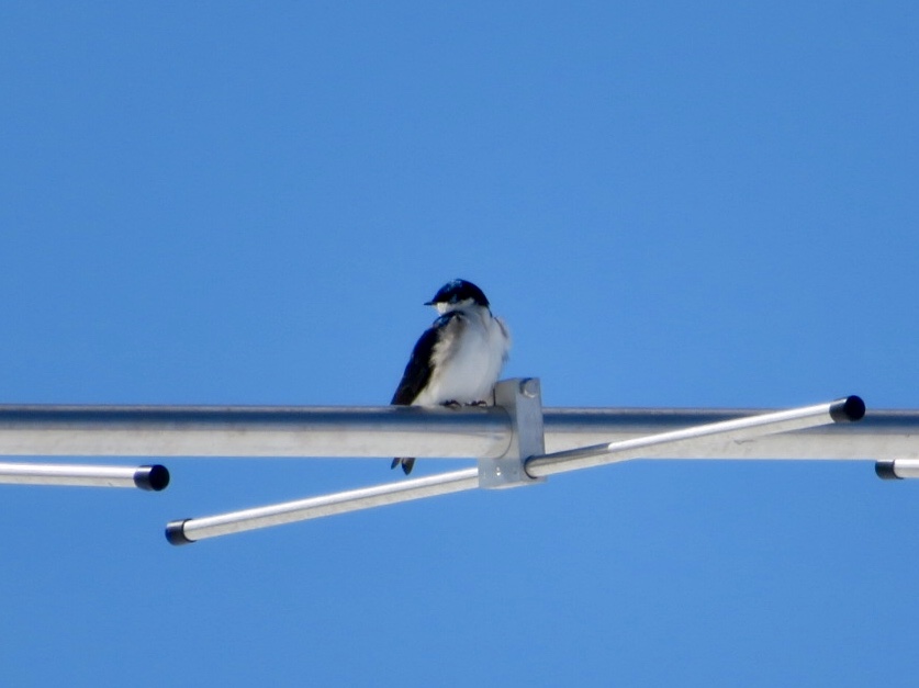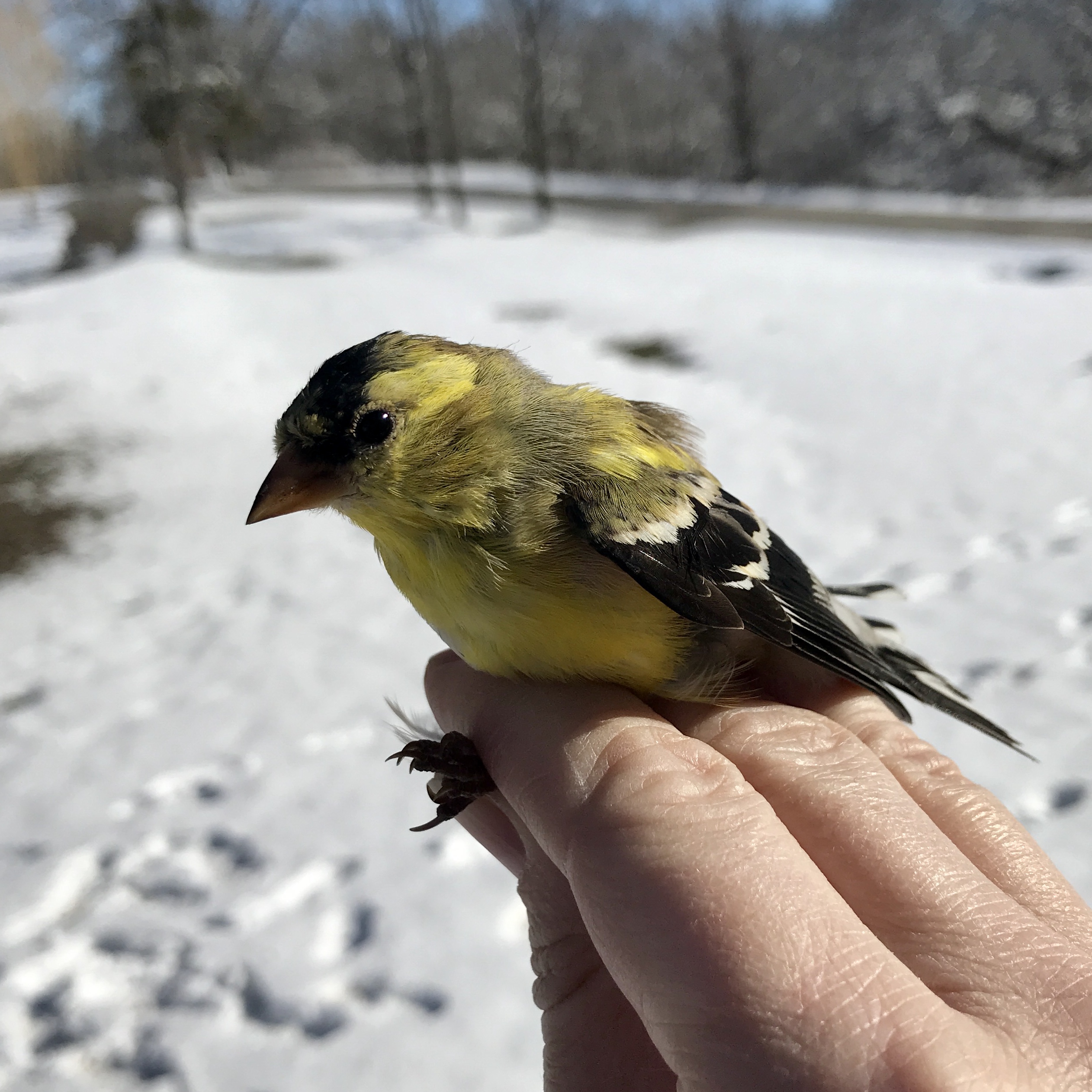 Our first day of banding was a sunny, beautiful day despite the cold temperatures and the snow that was left behind from Saturday’s snowfall. Nets were left closed today and the first few birds banded for the start of the spring season came from ground traps. Two new species for the season were first observed by Carol Jones – she saw Tree Swallows perched on the Motus Tower and the highlight was a flock of Greater White-fronted Geese which is new species for Ruthven! A fantastic day thanks to everyone who came!