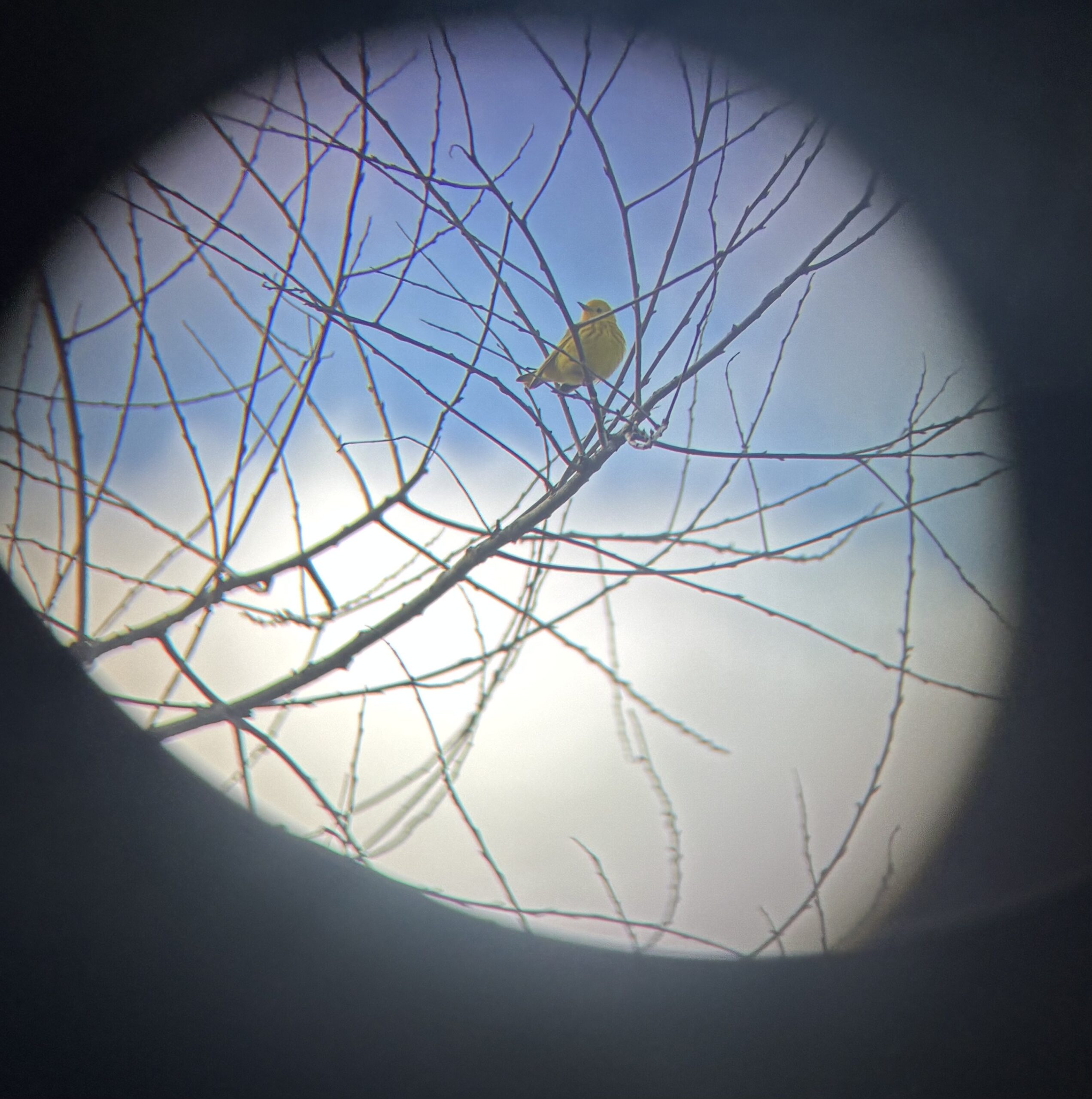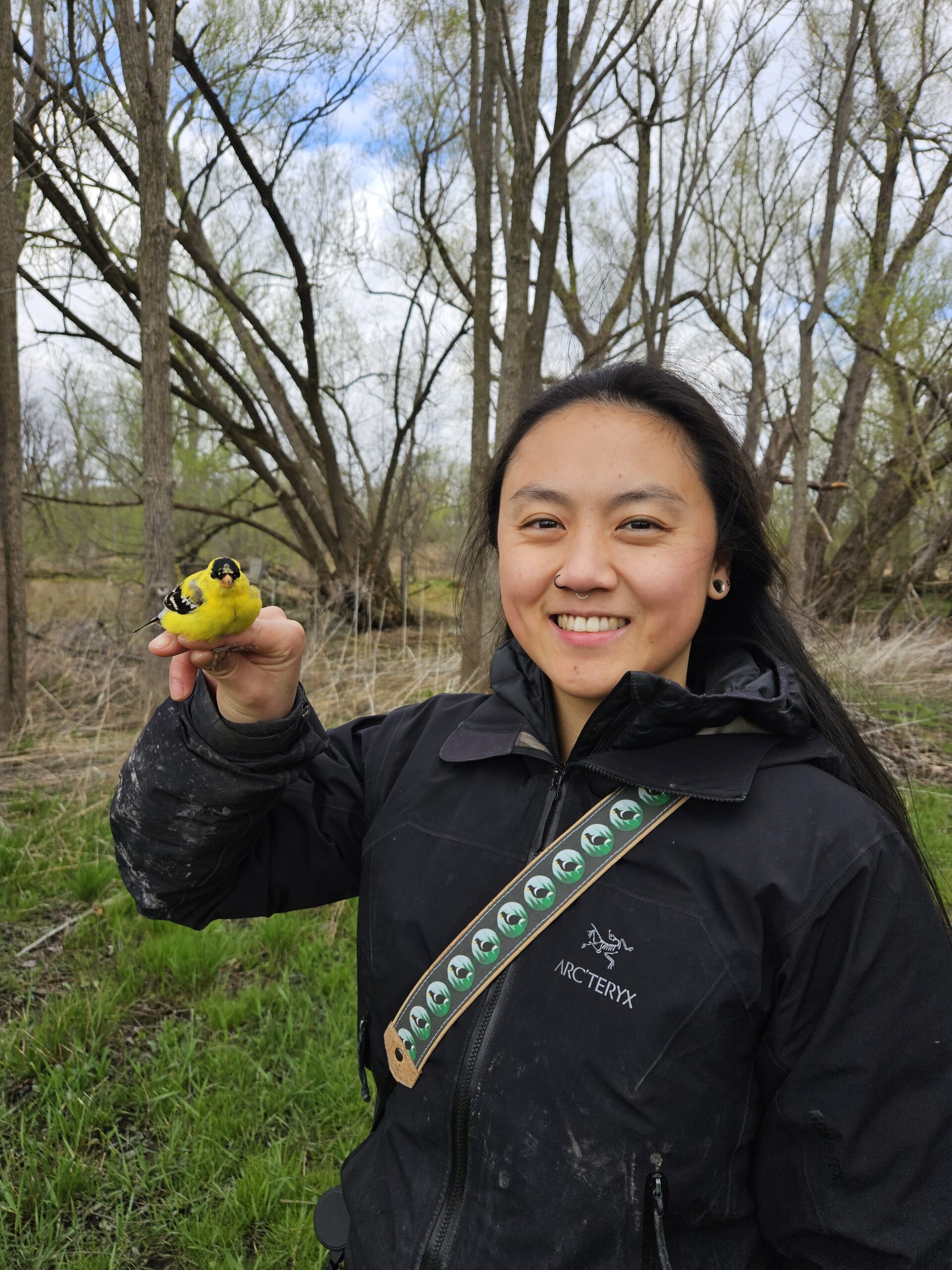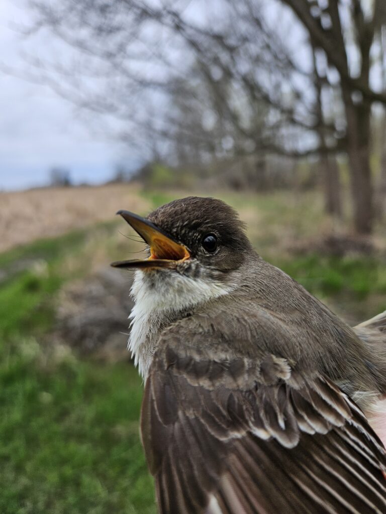 The weather continues to be topsy turvy: windy, wet and temperatures ranging from “T-shirt” level a couple of days ago to multiple layers yesterday and today. When I got to the Farm this morning the temperature was -3 C. Interestingly, the poles weren’t iced up and the nets weren’t frozen. We’ve continued to squeeze out all the birds we can find. Some seem nonplussed. Sally dug up a very early Northern Yellow Warbler yesterday and Jason got a picture of it this morning: