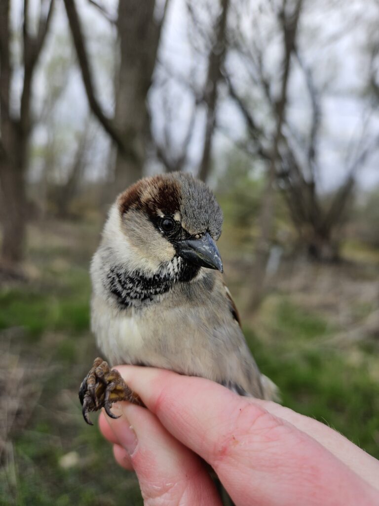 We’ve also been listening to an early Northern House Wren for the past couple of days. It found its way into a net and turns out to be an “old friend” – it was banded at the end of last April. It must really like our site as it has returned about 2 weeks earlier than last year – despite the lousy weather. It wants to make sure it takes command of the good nesting areas.