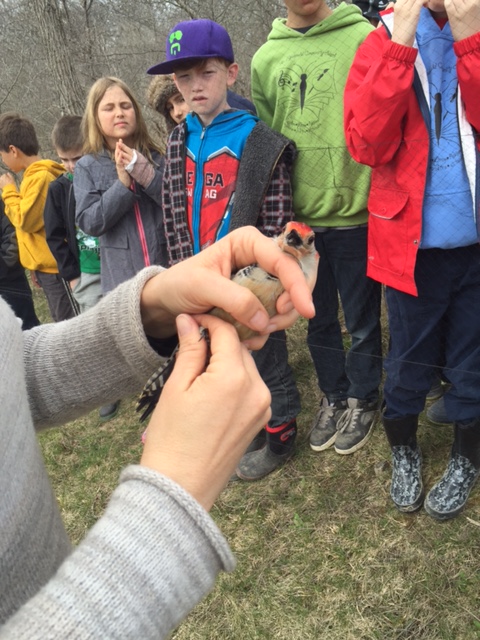 I’m at that stage where I can appreciate pants with a “relaxed fit” – you know, a little bit of elastic that gives and takes with your waistline. In a way, sort of like today: a relaxed pace day – not a lot of birds but enough to engage the large group of students that visited without having to cram in frenetic net rounds. This gives us a good chance to take our time explaining the nuances of the various species and engage those students that show an interest. It was great having Joanne Fleet with us; her enthusiasm is infectious. I love this line (as she and the group approached a net with a Red-bellied Woodpecker in it): “Your day is about to get even better!”