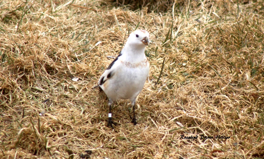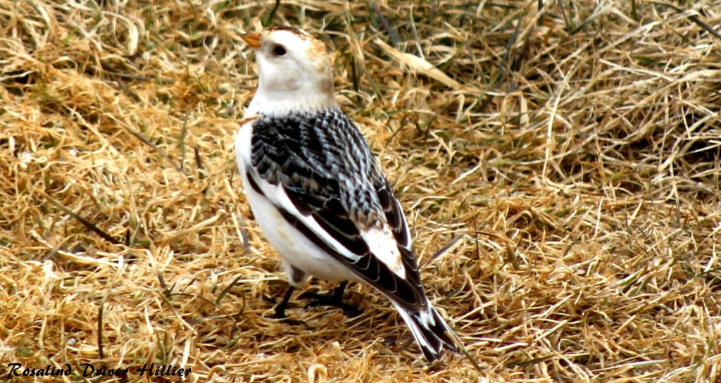 Rosalind Driver sent me news and some pictures of Snow Buntings that she took in her town which is about 4 hours from St. John’s. Note how fat these birds look. They likely have enough energy reserves to take them all the way to Greenland when the winds are “right”. Also note that one of them is banded. I would love to know who banded it and where. It would seem odd (to me anyway) for a bird from southern Ontario to end up in Newfoundland before heading for the breeding area in the Arctic.