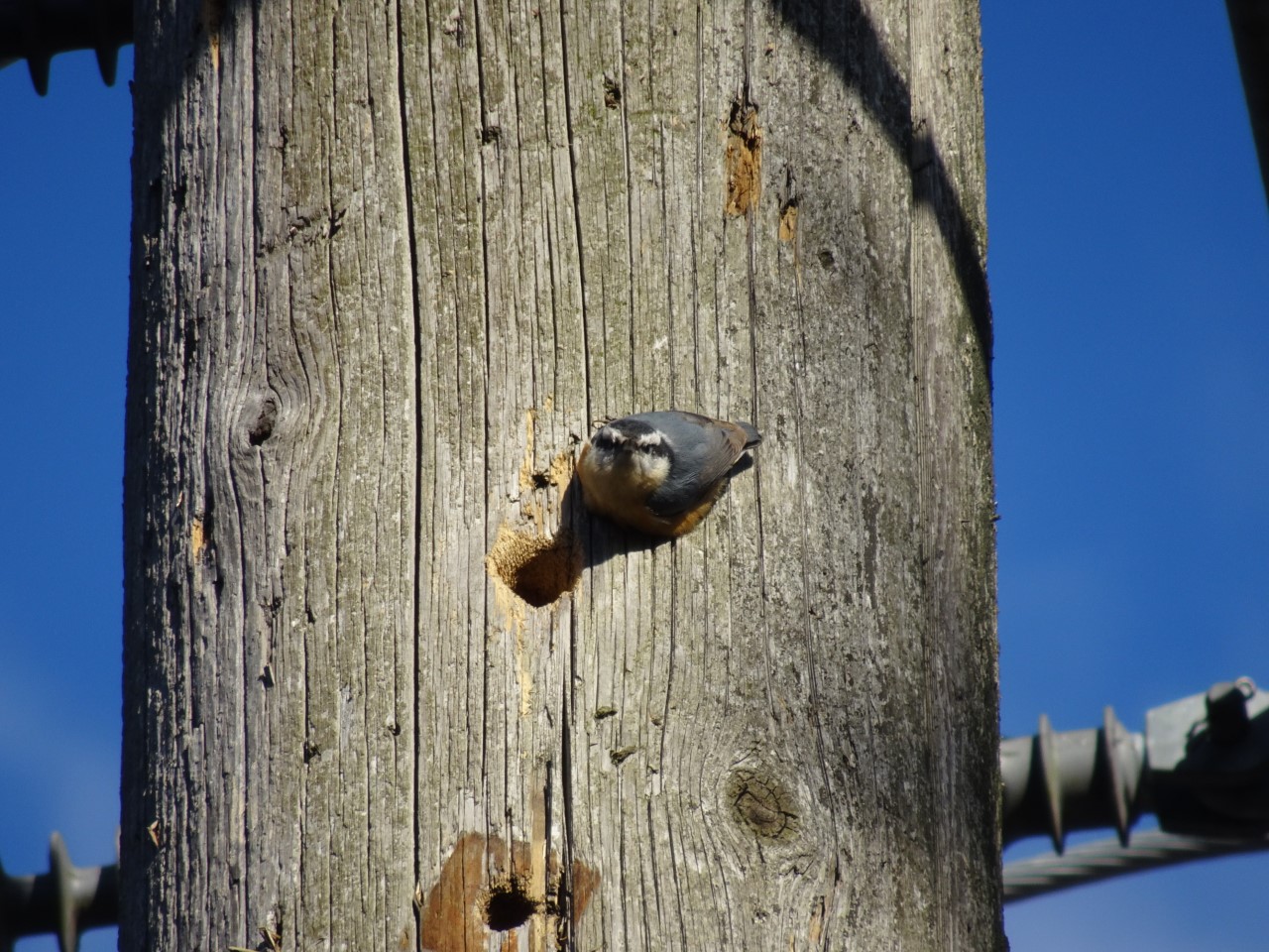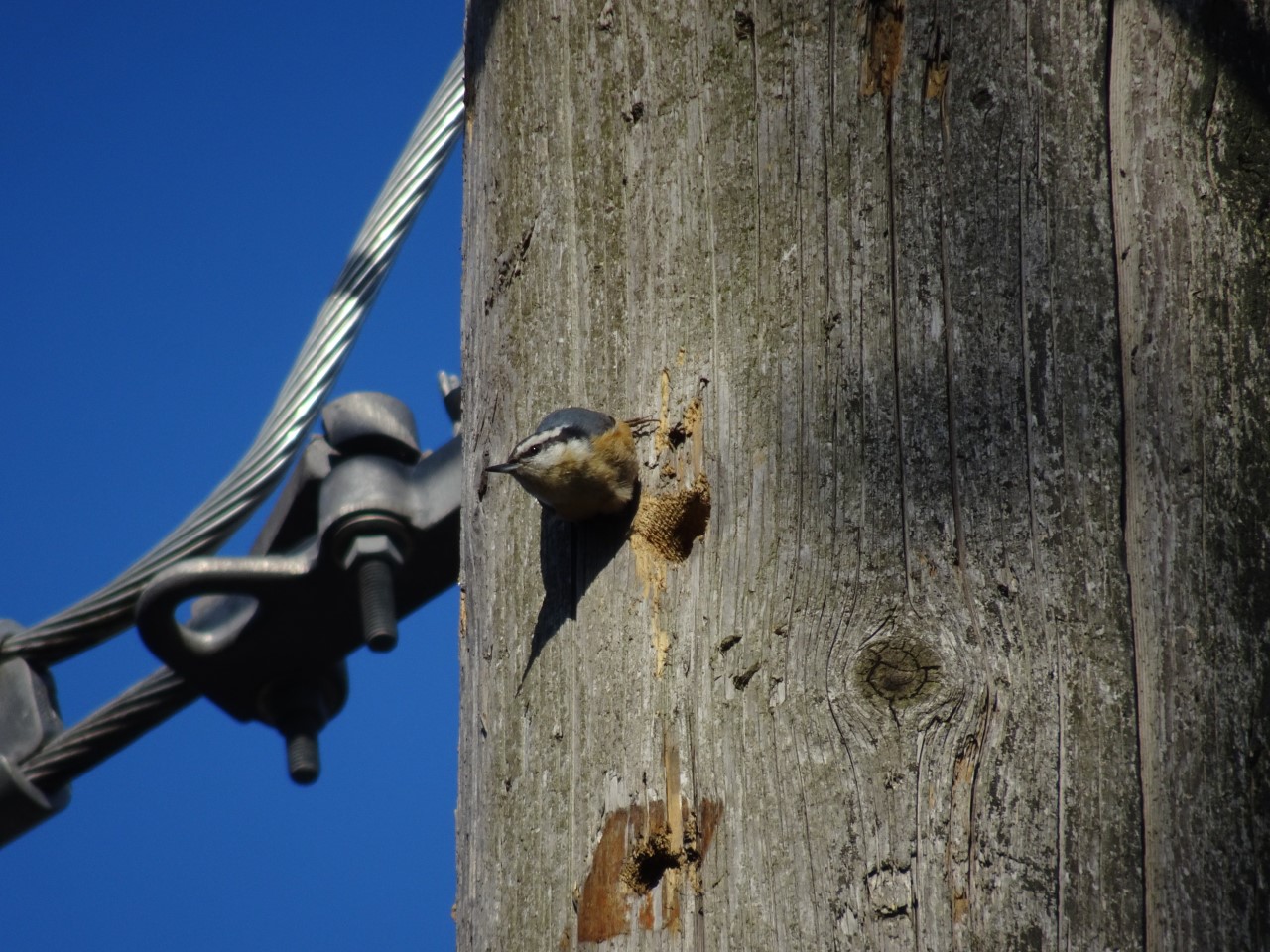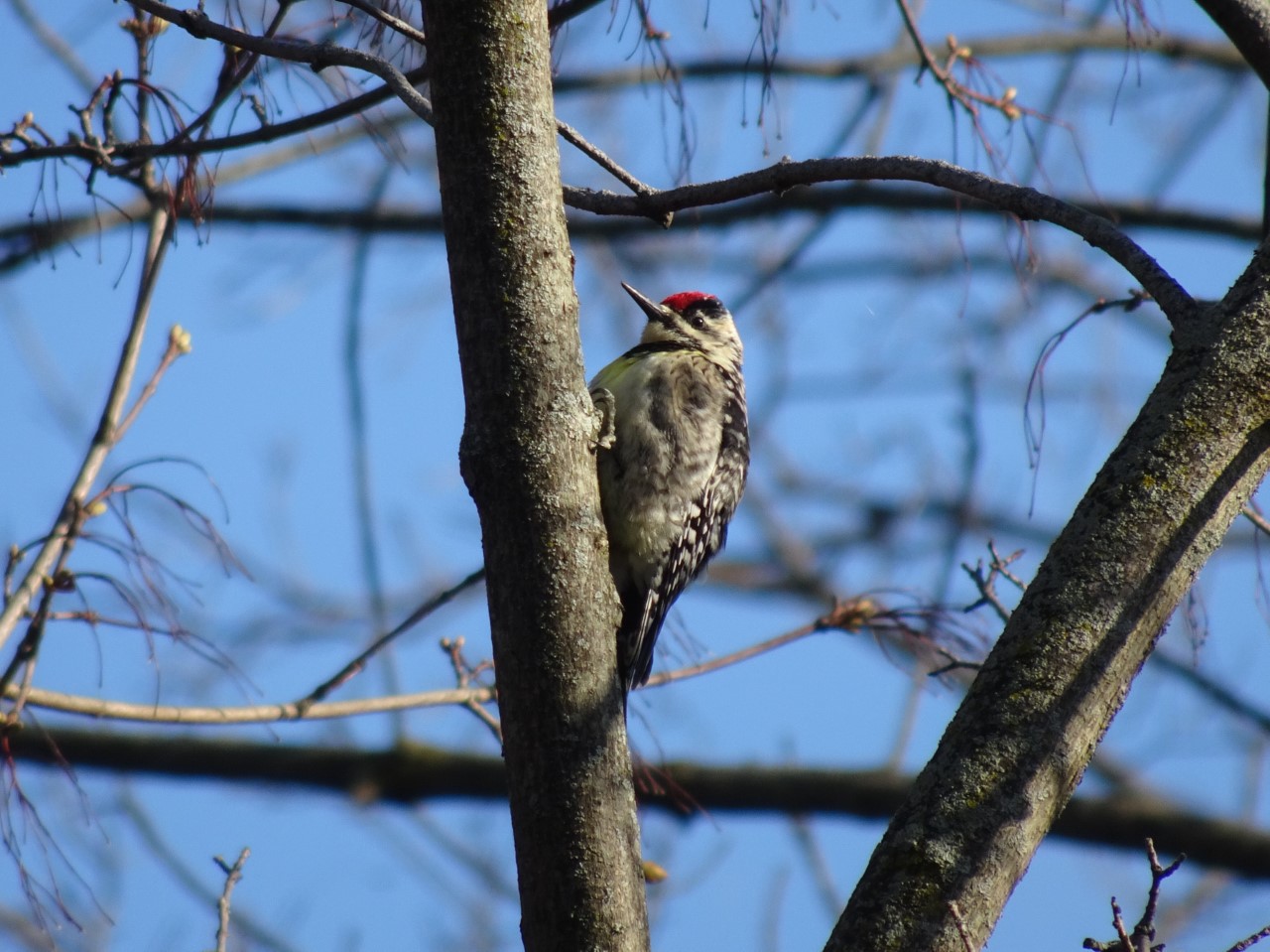 Yesterday was a great woodpecker day: I saw/heard DOWO [Downy Woodpecker], HAWO [Hairy Woodpecker], RBWO [Red-bellied Woodpecker], 2 YBSA [Yellow-bellied Sapsucker] (a new local bird), and RBNU [Red-breasted Nuthatch] & WBNU [White-breasted Nuthatch]. Attached are photos of the nest-building RBNU and the YBSA.