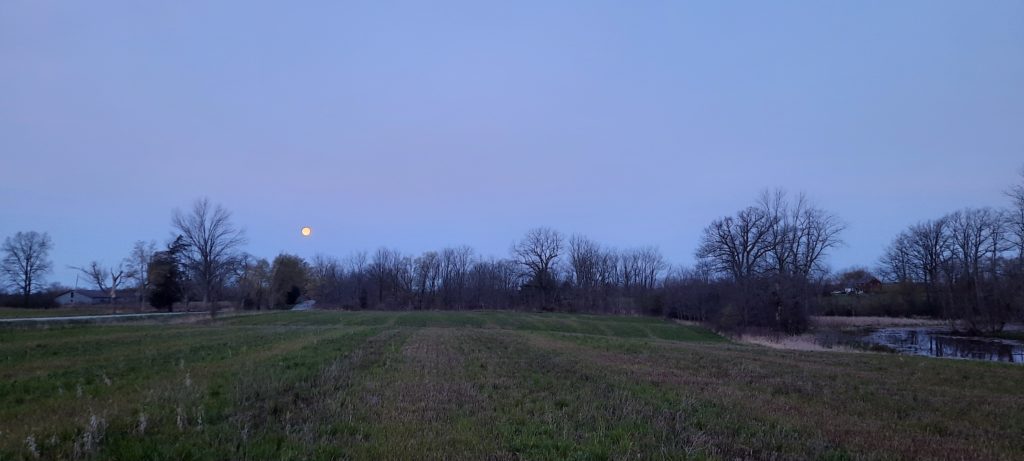I have been waiting (I would like to say patiently….but maybe not) for the regular Spring birds to return. It seems to be a very slow April. But today things began to pick up. I had my first sighting of Common Loons – 5 of them heading NNW about 25 minutes after sunrise (their having spent the night on Lake Erie’s Inner Bay and then moving with the sun). That was a good sign. And then I caught and banded my first White-throated Sparrow of the season – another good sign (they’re a little late). I was joined today by Joanne Fleet and she worked her peculiar magic by turning up the first warbler of the season: a Yellow Warbler. In total we banded 20 birds: