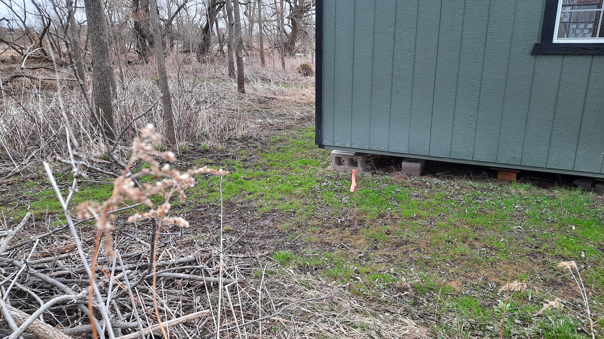 Although we got a few showers yesterday afternoon, we didn’t get any during the night. The river has dropped considerably and with it the flood waters along its tributaries – including our wetland. Whew! If you search the above photo carefully, you can find the stake with orange flagging tape that I put in the ground at 8:30 yesterday morning to mark the edge of the flood. As you can see, there has been a considerable drop.
