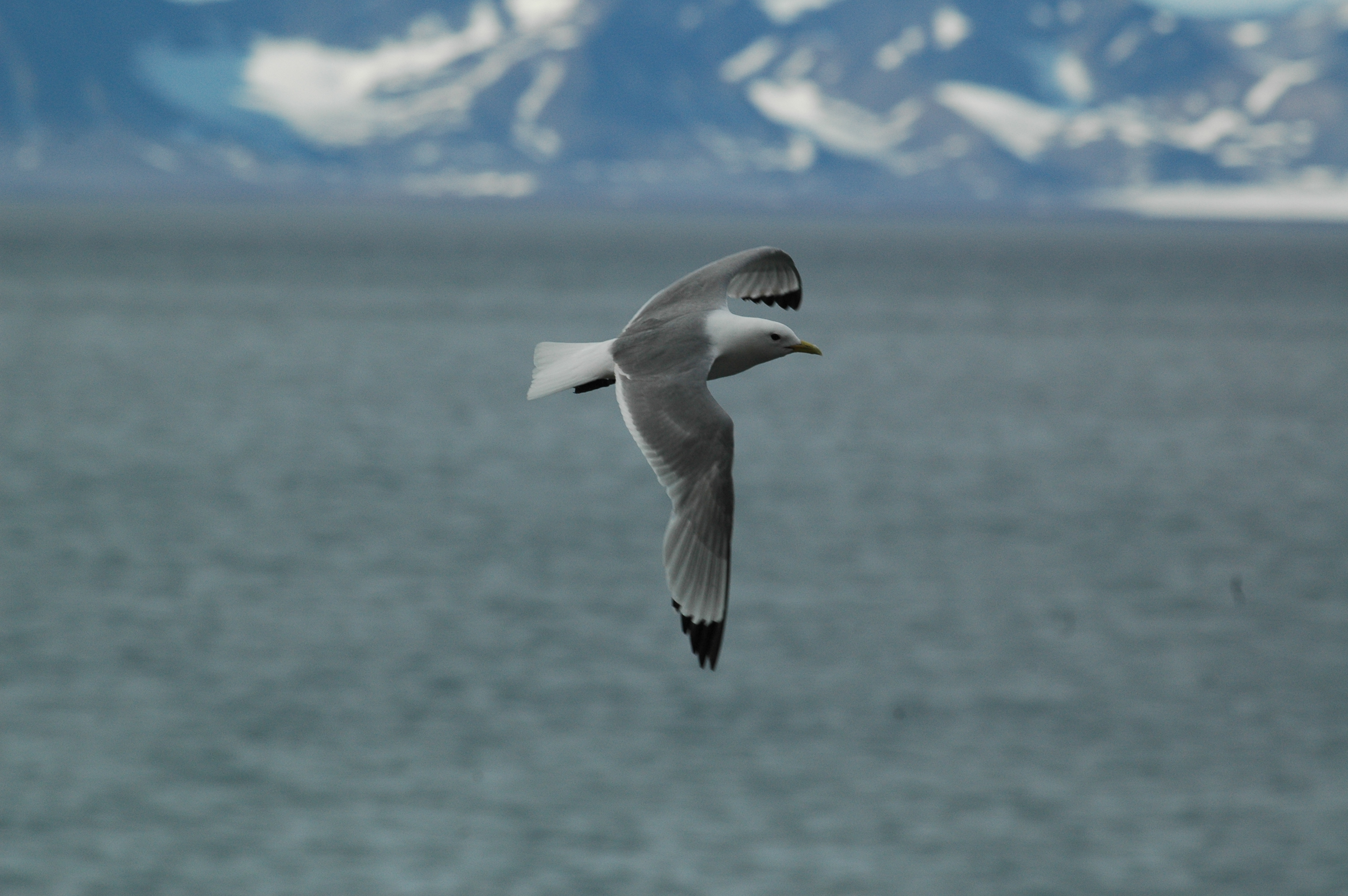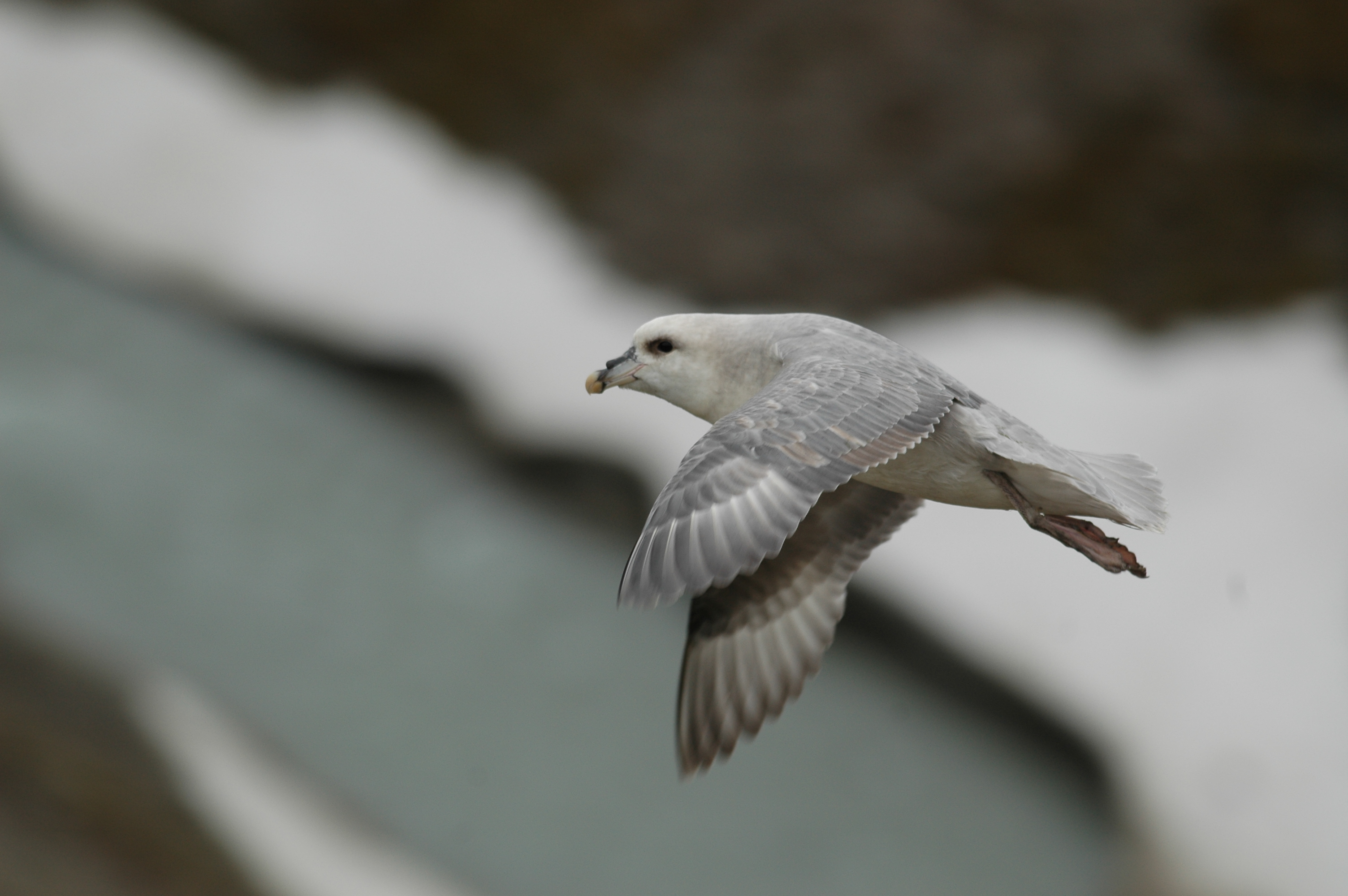 Fulmars were with us pretty well anywhere we went and they were joined by kittiwakes when we were breaking through ice in fact, usually outnumbered by kittiwakes when we were breaking a passage through ice. The reason was simple: they were after the tidbits churned up by the Oden’s propellers and exposed in the open water wake. The rear of the ship was a good place to search as Jaegers (we saw all 3 species) often made kleptoparasitizing forays and occasionally we were rewarded with an uncommon gull – Thayer’s Gull on a couple of occasions and a single Sabine’s Gull on another. Thick-billed Murres stayed away from this melee, preferring more open water.