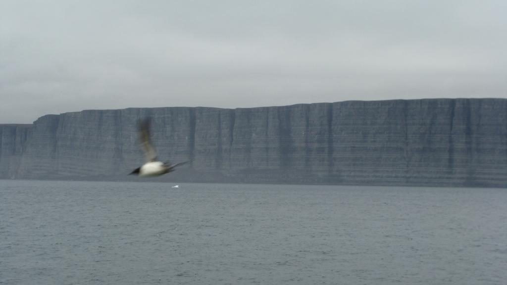 On the return we were able to spend some time around Prince Leopold Island – the most important seabird nesting site in the high Arctic. Most seabird colonies host only one or, at best, two species but PLI is home to large numbers of Thick-billed Murres (68,000+ breeding pairs), Northern Fulmar (16,000 breeding pairs), Black-legged Kittiwakes (29,000 breeding pairs), Black Guillemots (2,000+ breeding pairs), Glaucous Gulls (~100 breeding pairs).