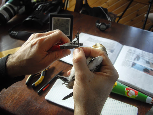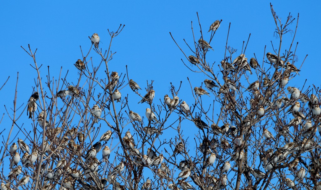 It has been an interesting season, for certain. The strange thing for me is the number of females. Normally about 5% of my bandings are female Snow Buntings. This year I am around 18%. I wonder if the fact that I had no Snow Buntings at my site until January 2 might be the difference. There were lots of Snow Buntings 100 km north of my site in December but none at mine. Now they are here in reasonable numbers and the lively mix of females is a pleasant surprise (despite the challenge of aging females).