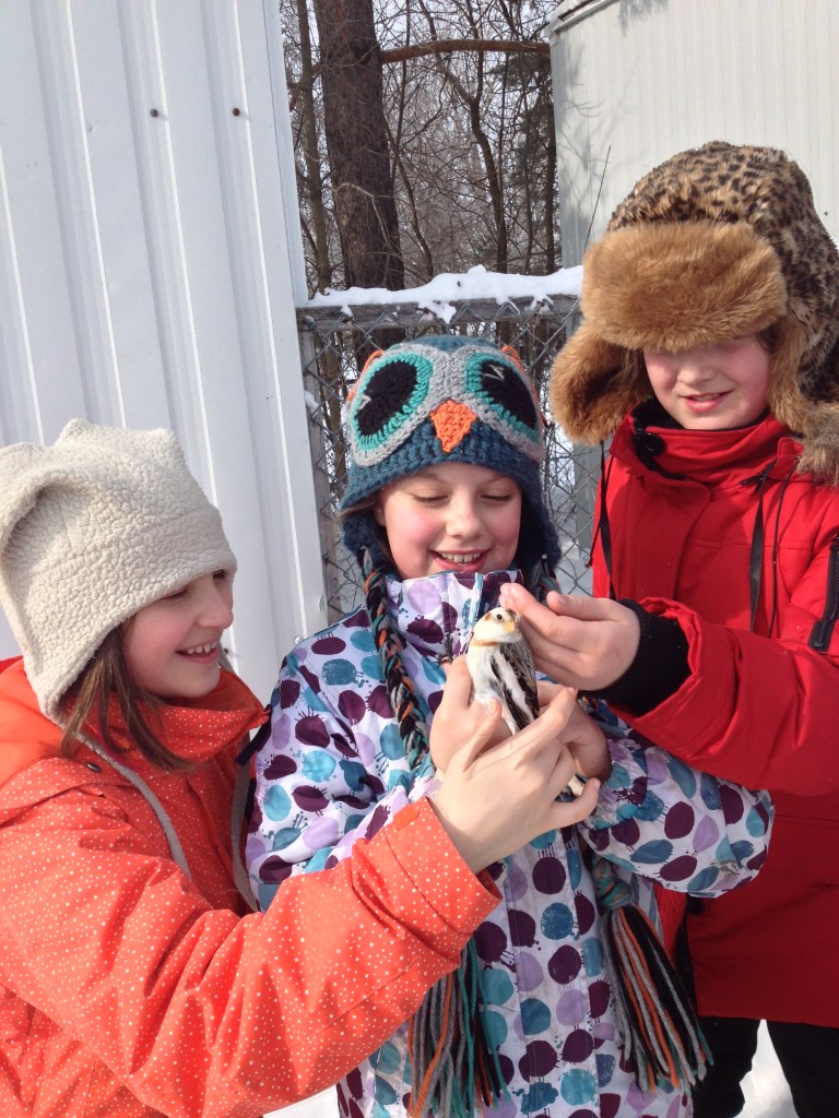 Super cold temps here in Northern Ontario. The students are beginning to go a little stir crazy from being kept inside for recess. We have a small flock of anywhere between 60 and 100 birds feeding at the site right now. I think most birds have packed up and moved to the balmy south! (Say “Hi” to our birds for us Nancy Furber!!) My students were recalling that last year we had the same issue with super cold -40ish temperatures and very few birds, but as the winter dragged on it brought with it the birds on their return North. I believe our last banding day last year was April 17th with still lots of snow cover! Perhaps we will see the same trend this year? Despite the cold, we did band a few days and even took a grade 3/4 class to our trap site, we had lots of cold cheeks that day but the younger kids were super excited to see the traps and to have the chance to release the banded birds. To date we have only banded 238 SNBU and 6 LALO, but if you have ever lived in the North, you know there is still lots of winter left!! Joanne Goddard, Temiskaming area