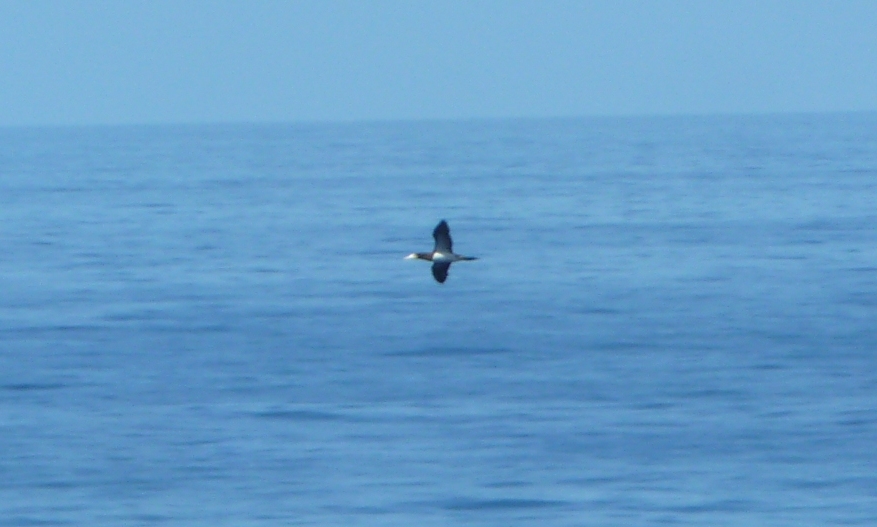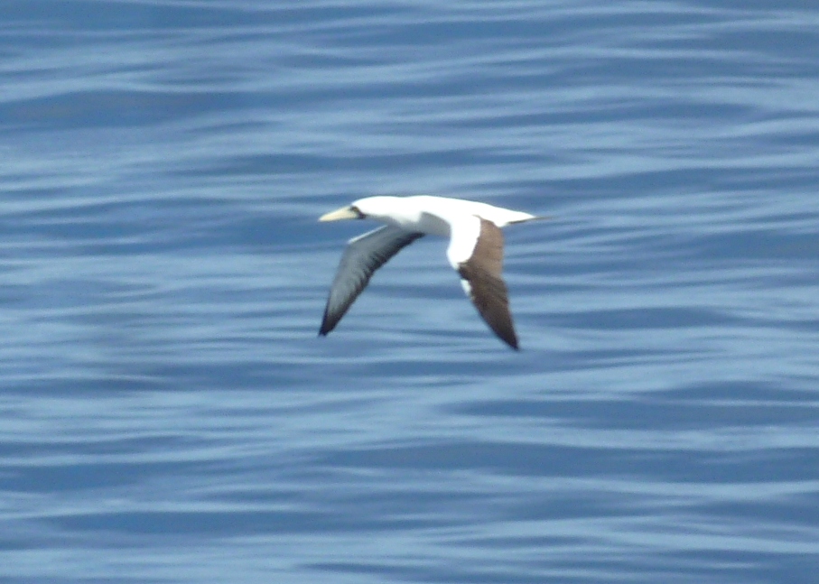 I had seen a Brown Booby before. My good friend Durlan Ingersoll, who is the first mate on the whale watching tour out of Seal Cove on Grand Manan Island and who is an excellent pelagic birder, spotted one in the Bay of Fundy while we were out ostensibly looking for whales. He excitedly ran the length of the vessel to point it out. I think it was only the second (maybe the first?) sighting for the province of New Brunswick – explaining his excitement. So while seeing a Brown Booby was nice……it wasn’t a “tick”. A couple of days later though, heading into the southern Bahamas, a few Masked Boobies accompanied the ship for half a day – but there were only a few. Every now and again a flying fish, bursting through the surface, would attract their attention.