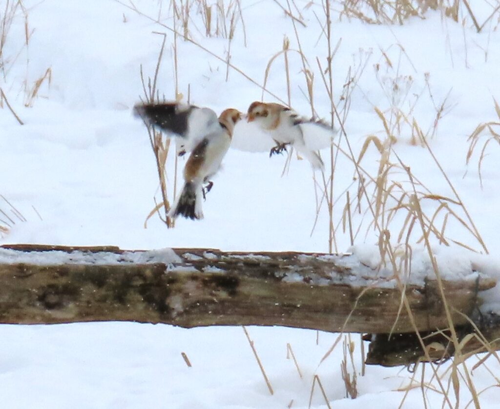 With the snow melting and the fields opening up, is this the end of the Snow Bunting season for us? There’s no question that snow is a prerequisite for them and if we lose it (as we are now) then it’s unlikely that we’ll see them again this Winter. Still, there’s some snow in the forecast. But…I must say that I’ve become a weather forecast skeptic, an “I’ll believe it when I see it” sort of guy. So we’ll see. It would be nice to hit 2,000 for the season….