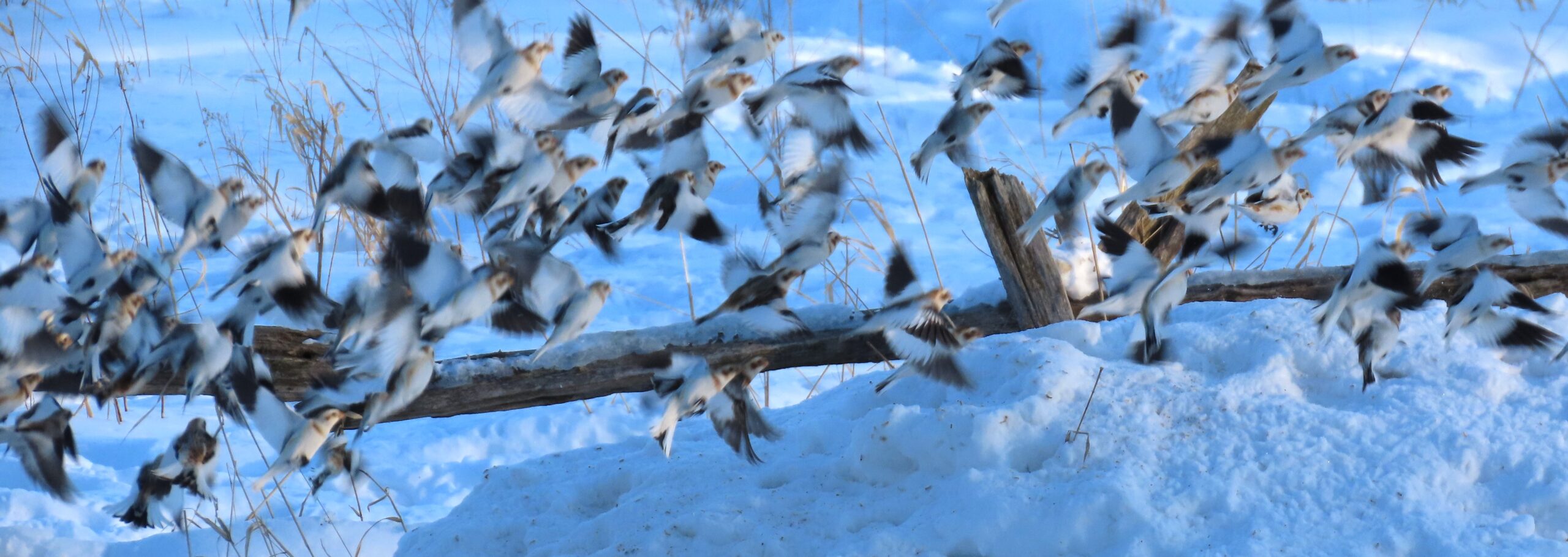 We’ve had a good run! Although Marnie’s Irish Line site produced 55 Snow Buntings over two days in the middle of December, we didn’t really get good Canadian Winter weather until the middle of January. And for about a month (starting on January 16th and running till February 15th) we were blessed with cold temperatures (sometimes bitterly so) and snow. Bunting weather! It’s still amazing to me how these little birds (weighing between 30-35 grams) seem to withstand severe cold elements with such ease. In fact, research carried out at the University of Rimouski by Francois Vezina has shown that the birds have much more difficulty dealing with warm temperatures than with cold.