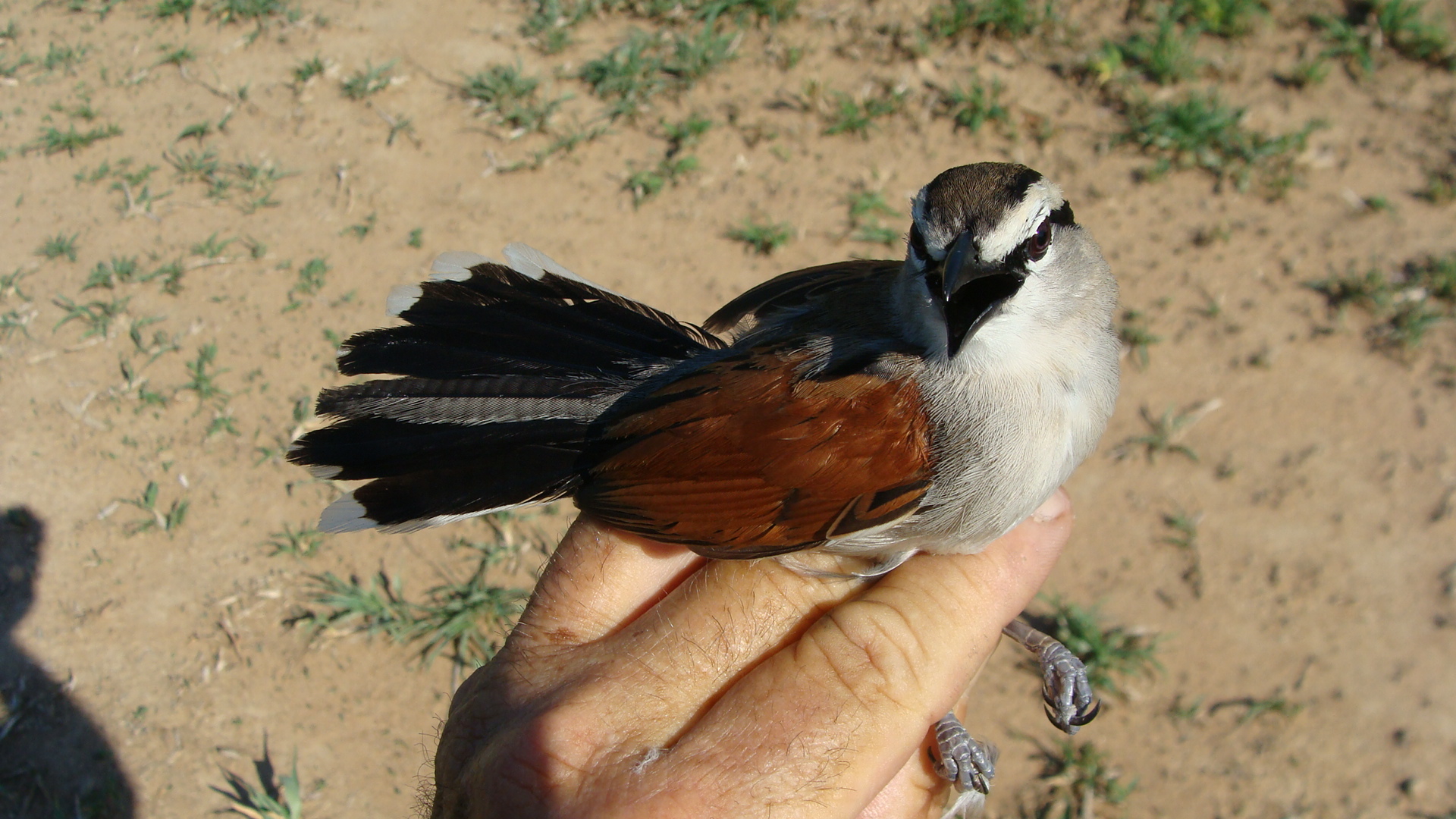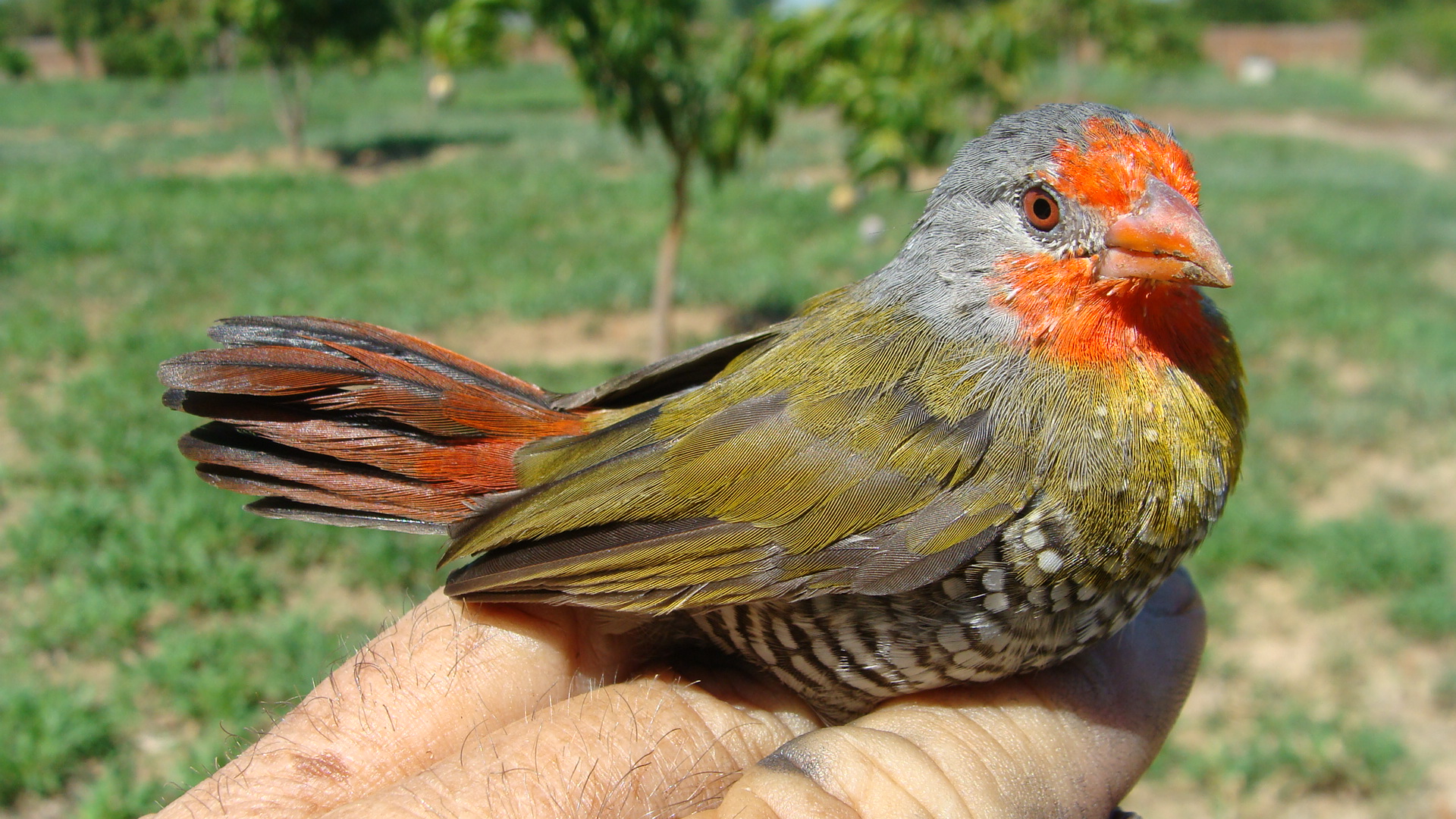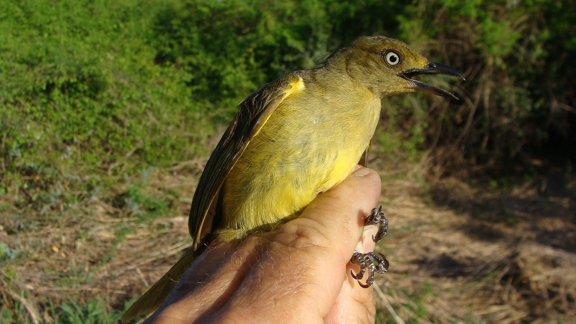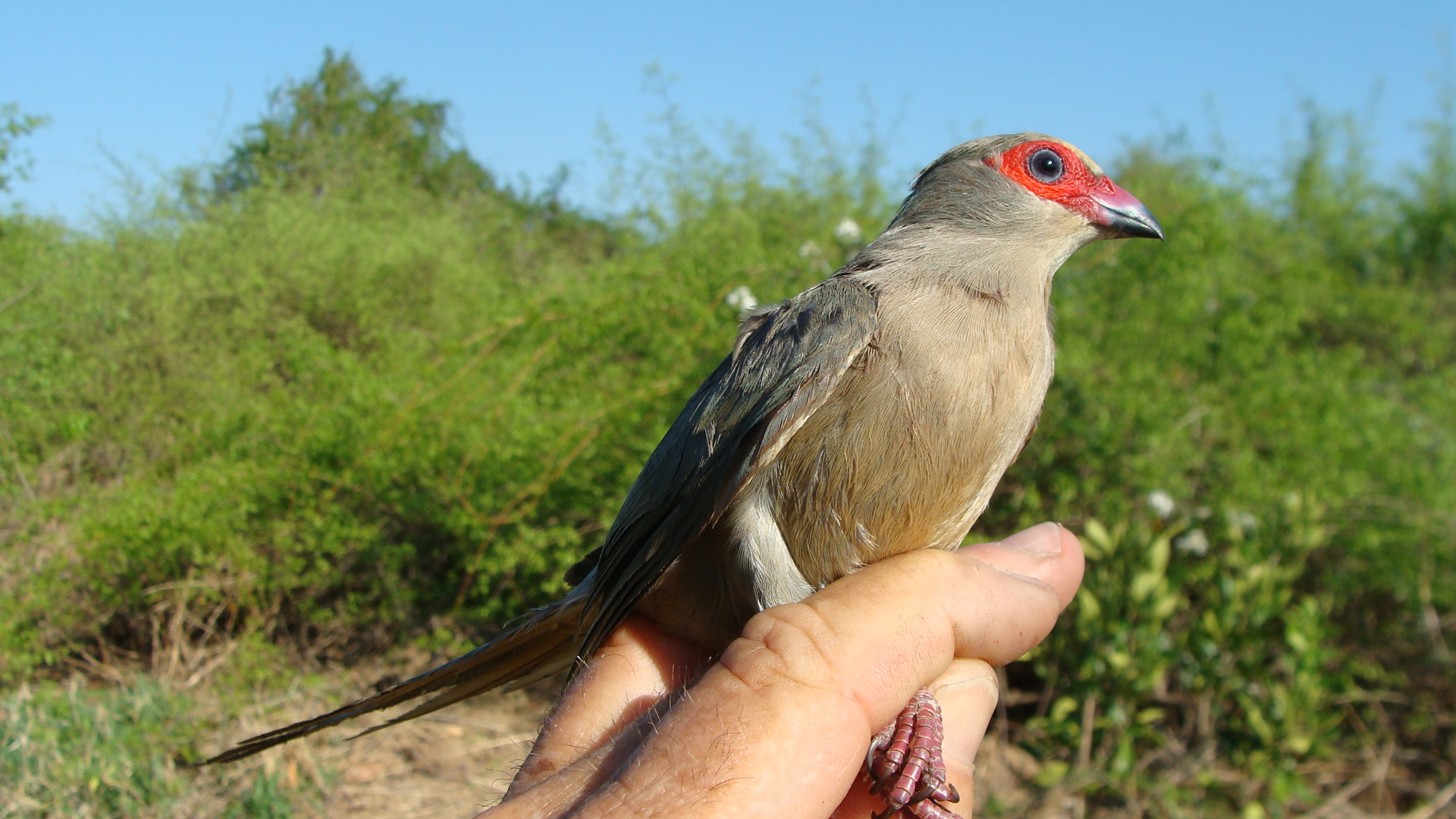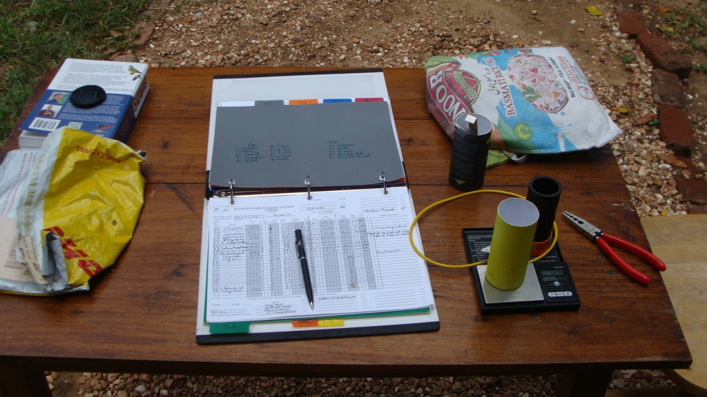 Banding in Malawi (as in Kenya) is a different process than I’m used to at Ruthven. At Ruthven we have set net lanes that we use from year to year knowing that migrants predictably are going to flow through at a particular time each year and will be using the “corridors” (edge habitat) where we set the nets. First of all, in Malawi there are a LOT more birds around, migration or no migration. And where they are and when they’re there is dictated by the rains which can be quite variable. They can start early, or late, last a long time or not long at all, drop a lot of water or, in bad years, hardly any or none at all. So I set my nets based on observations of where the birds are at any particular point in time assessing why they’re there. Usually it’s because of a concentrated food source or an abundance of nesting material. The thing is: these are not constant and can vary from day to day (if not hour to hour – when the fruit on a particular tree is used up then they need to find another tree). Also, birds soon learn where the nets are and begin to avoid them. Consequently, I would move my nets every couple of days and place them where I thought I would get a day or two out of a resource. Fortunately, I was using only 2 nets so this wasn’t a big deal (other than clearing the lanes). The reason for using only 2 nets is that I was worried about a couple of things: a big hit (e.g., a wandering flock of weavers or mannikins could involve a lot of extraction); I didn’t want birds to be hanging in the nets in the heat of the day (on a couple of days the temperature soared into the mid-40’s by mid-morning); I was concerned about predators – birds and, especially, snakes (I encountered a sizeable [1 meter] Green Mamba coiled up atop a shrub next to a net lane – it would be attracted to any bird in distress and I certainly didn’t want to have to try and extract this very poisonous snake- especially when anti-venom wasn’t available).