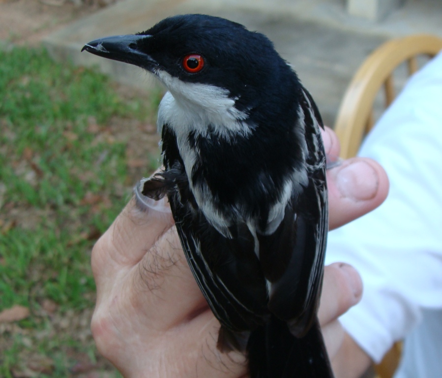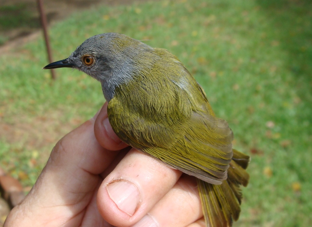 Due to the heat and intense sunshine, I banded for only 2 to 2 1/2 hours first thing in the morning and then for another hour and a half in the late afternoon/evening. There was less bird activity as well between banding times but I’m sure I could have caught considerably more birds but….at what cost to the birds. As it was, I ended up banding 148 birds of 29 species. Interestingly, I recaptured 10 birds from previous visits. (See the list of both banded and retrapped birds below.) In the future, I would like to “blitz” the area – band with a crew of several people so that we could run more nets in a variety of habitats. Also, I am trying to figure out ways of identifying and then involving and training interested local young people who might be able to carry this on – as has happened in Kenya (with Dan Odhiambo and Brian Ochiago). Isaac Mponya is a young man from Bangula that my colleague Andrew Bremner and I had a chance to work with for a couple of years; he is just finishing off college and is doing a field placement at Majeti Game Park (which I HIGHLY recommend) but whether he will be able to keep going in this field is up in the air. People need to simply survive and this kind of pursuit may not lead to gainful employment – sometimes eating the birds is required just to sustain oneself……