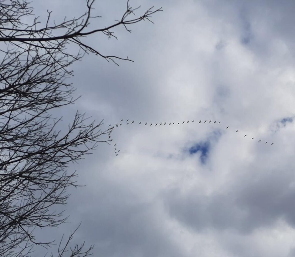 I got back from the Atlantic about a week ago…just as Spring arrived. Well….tried to arrive since we haven’t enjoyed much warmth. In fact, two days ago a snow squall covered the skein of ice on the pond with white. It melted fairly quickly but was a warning not to put away that toque and mitts. The good thing about the cold weather is that it slowed the swan migration so that I was able to see some migrating flocks when I got back.