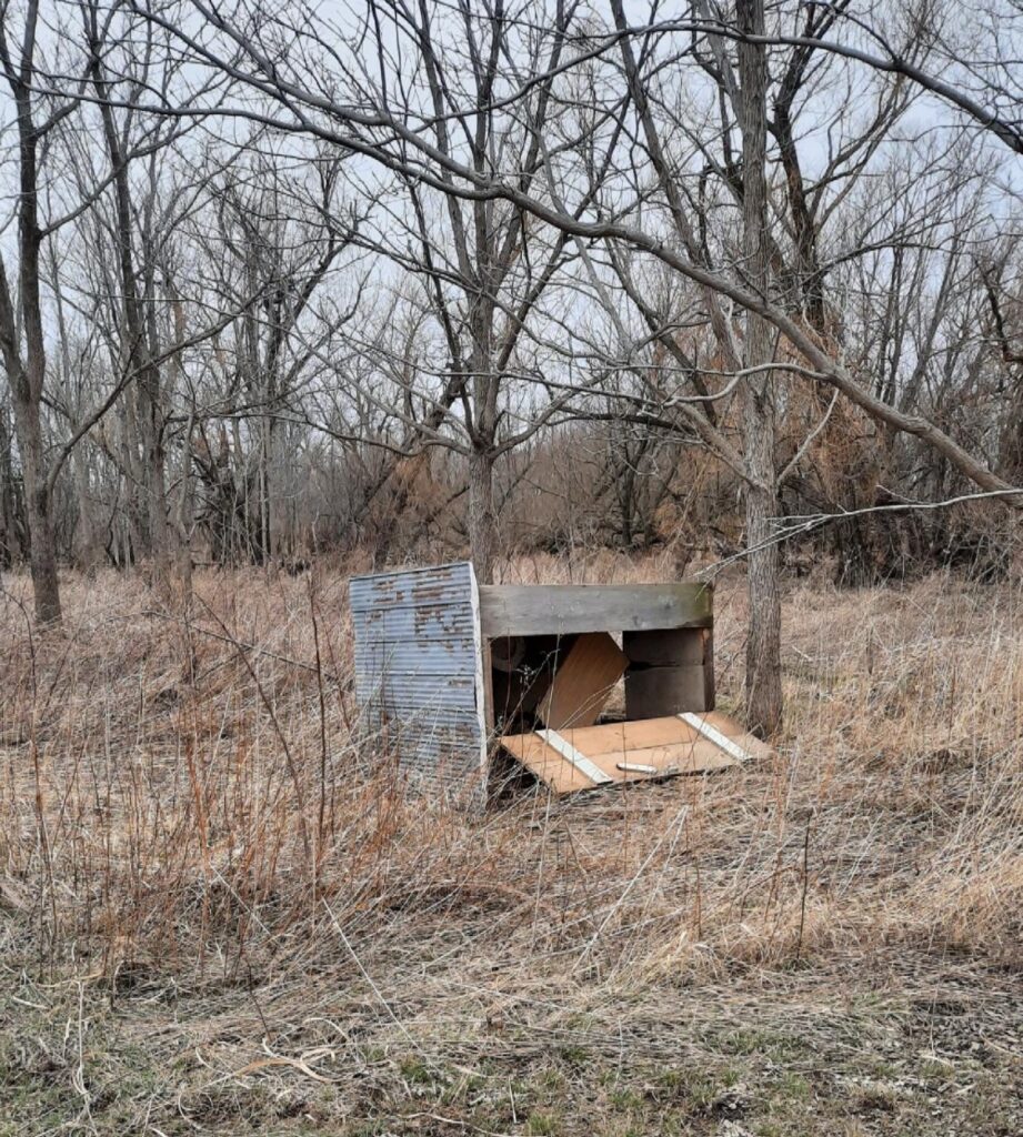 But with the approach of April 1st it is time to get ready to band. That means putting up nets and making sure the net lanes are clear. An intrepid crew arrived yesterday to get things started. We were able to put up 6 nets – the nets that are most likely to be productive early in the season: numbers 1 – 6. (I’ve given in to group persuasion/pressure and have numbered them sequentially! So no more bitching…please.) As well as nets, an important task was to get the outhouse back in place and operational. The recent flooding, though not quite as bad as last year, caused the building to twist and tip over. Fortunately, Dave and Elaine, outhouse specialists (they did the same job last year), managed to fix things up quickly.
