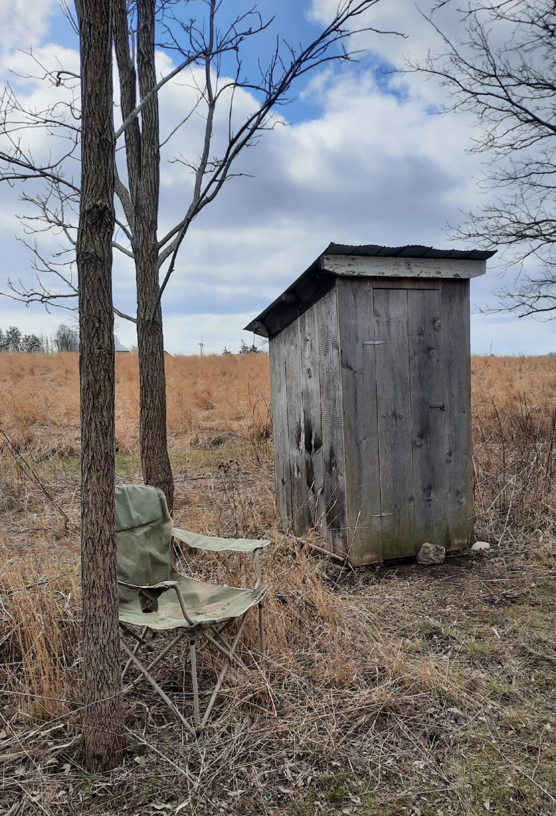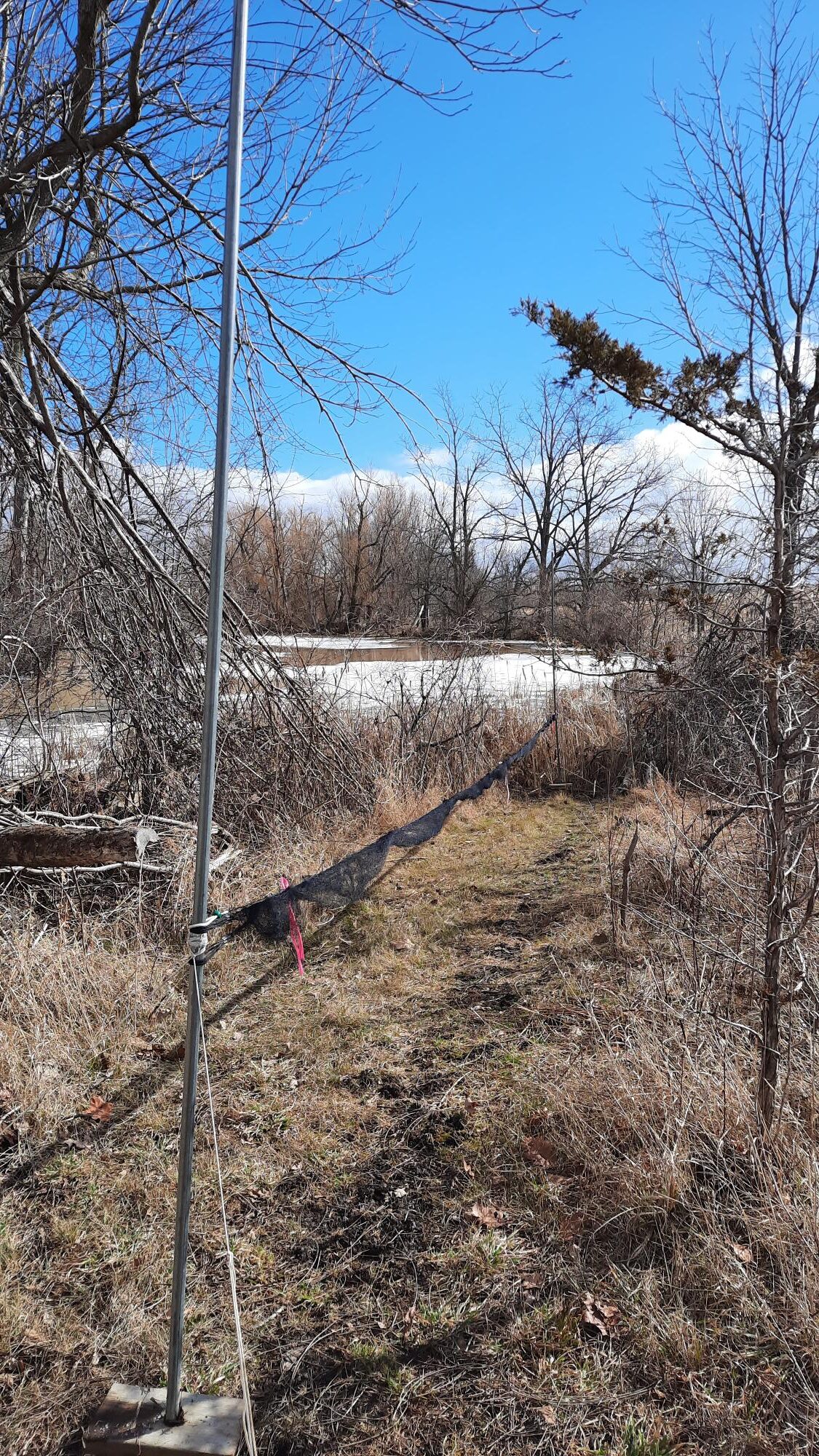 But with the approach of April 1st it is time to get ready to band. That means putting up nets and making sure the net lanes are clear. An intrepid crew arrived yesterday to get things started. We were able to put up 6 nets – the nets that are most likely to be productive early in the season: numbers 1 – 6. (I’ve given in to group persuasion/pressure and have numbered them sequentially! So no more bitching…please.) As well as nets, an important task was to get the outhouse back in place and operational. The recent flooding, though not quite as bad as last year, caused the building to twist and tip over. Fortunately, Dave and Elaine, outhouse specialists (they did the same job last year), managed to fix things up quickly.