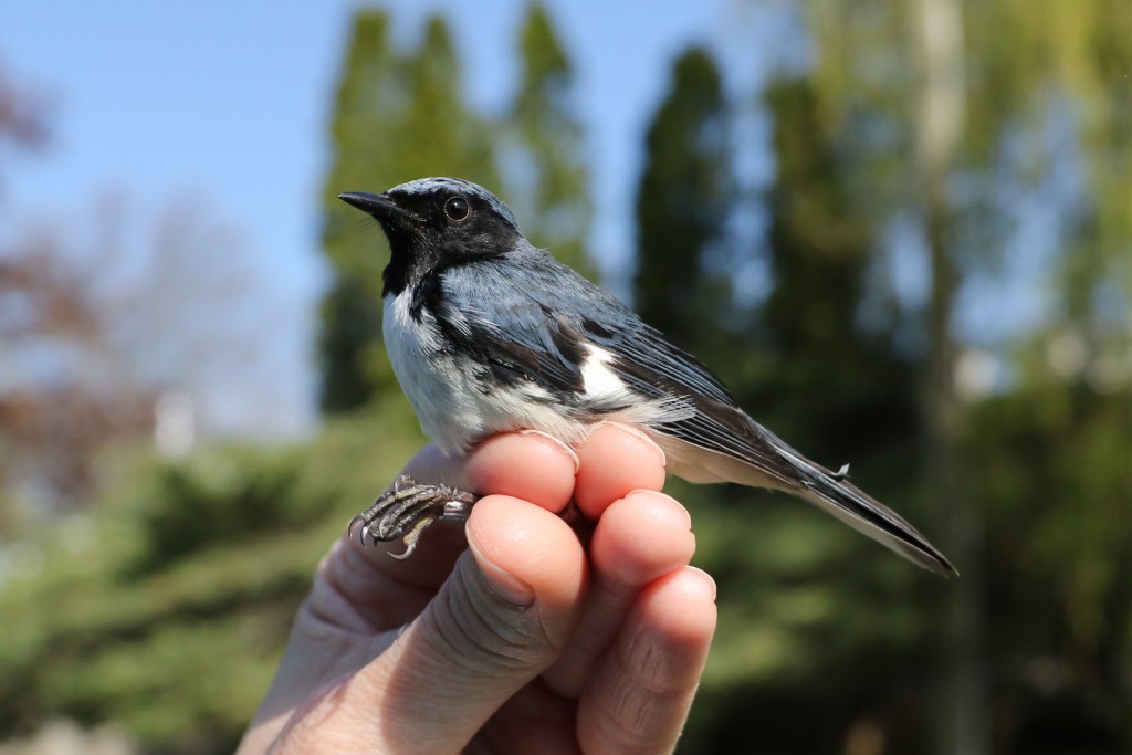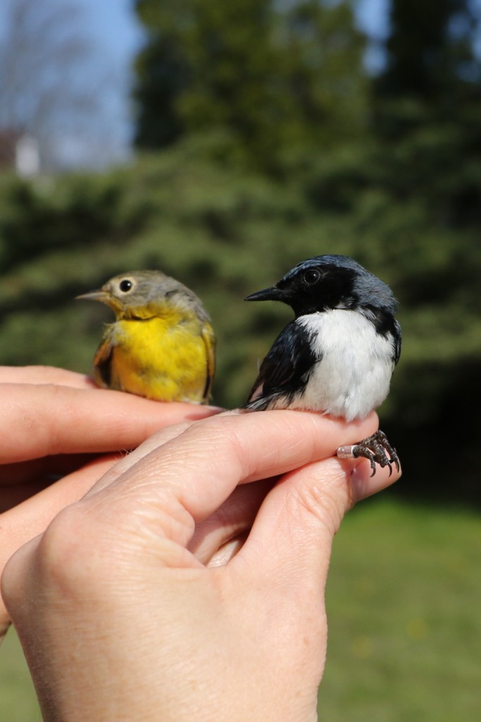 In keeping with migratory bird day, many of the migrants that we had encountered yesterday took off during the night but weren’t replaced by “new” migrants in any number. Both the number of birds banded and encountered throughout the day were markedly down compared to the last few days. This suggests that current weather conditions have been conducive to birds making time – making up for lost time – and that last night they “flew over”, making as much distance as they can.