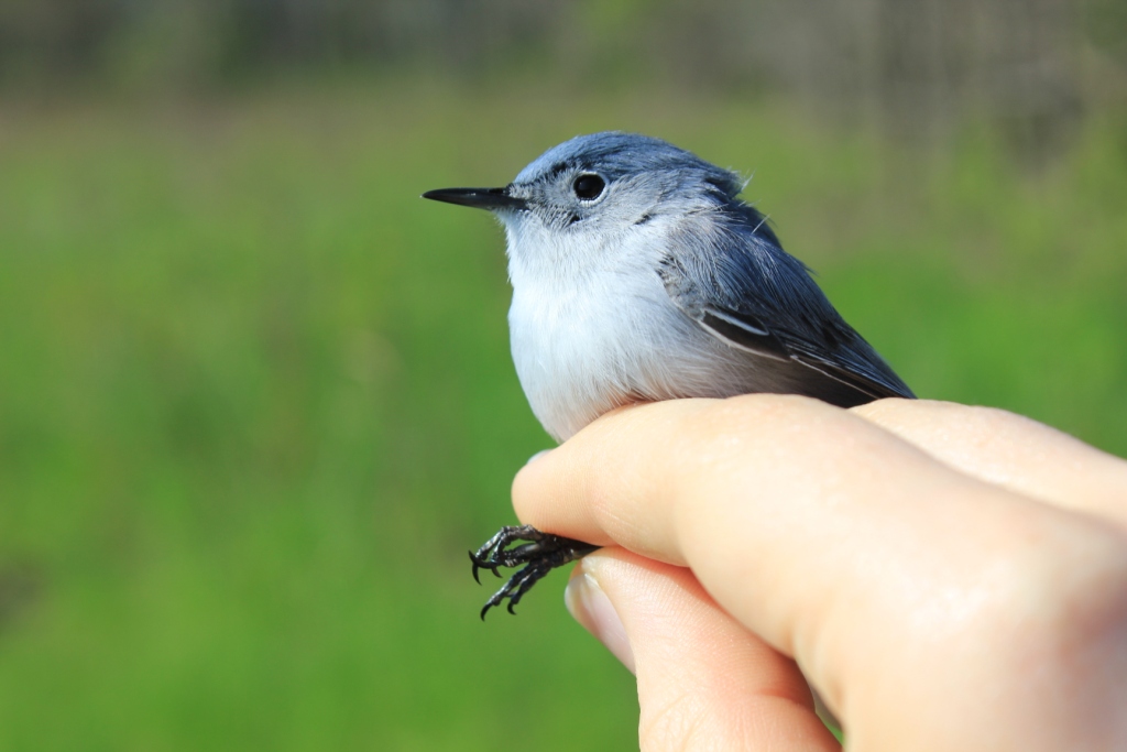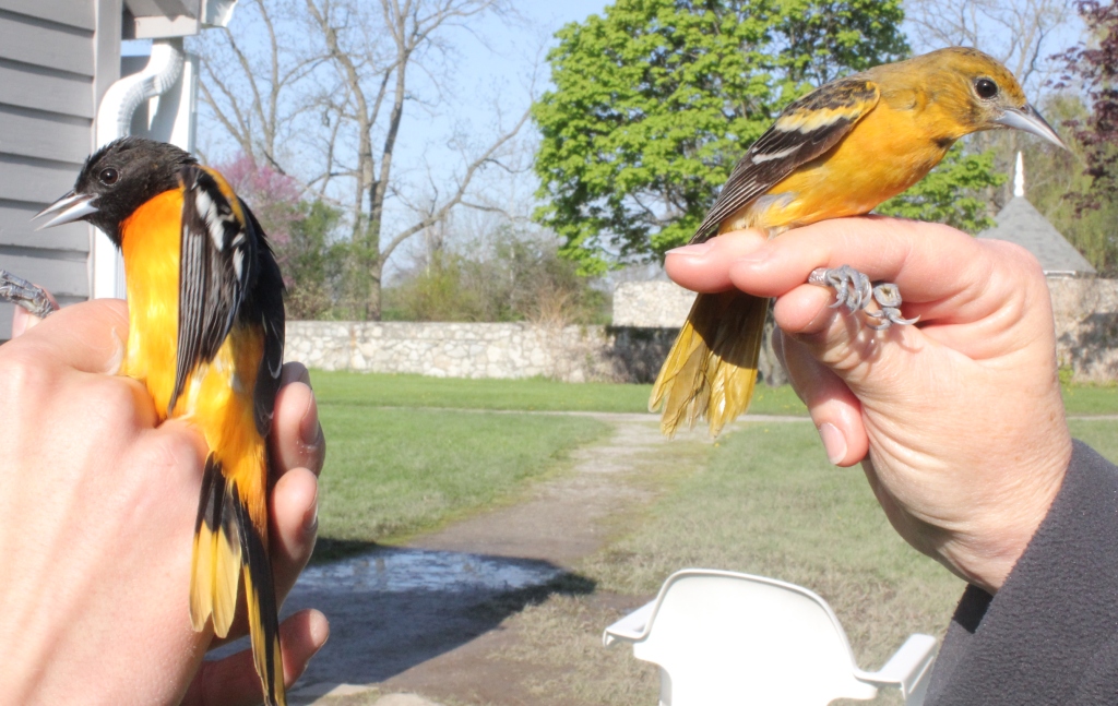During the last two days we’ve been seeing a wealth of warblers at Ruthven but, frustratingly, we haven’t been catching a lot of them. In fact, we’ve seen 19 species of them. They seem to be congregating in the woods between the Thompson Family Cemetery and the River and along the Fox Den Trail. Photographer Gail MacLellan spent a few hours sitting and shooting and has kindly shared some of her photos with me. (You can see them after the banding counts.)