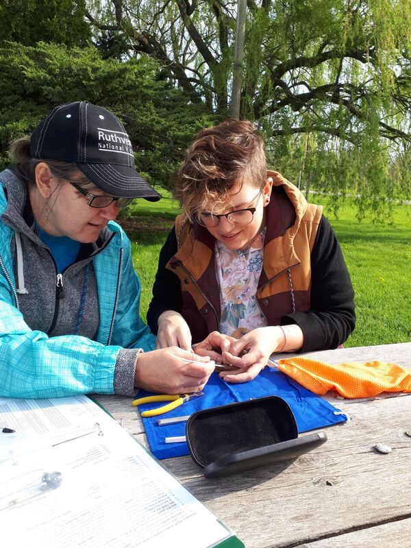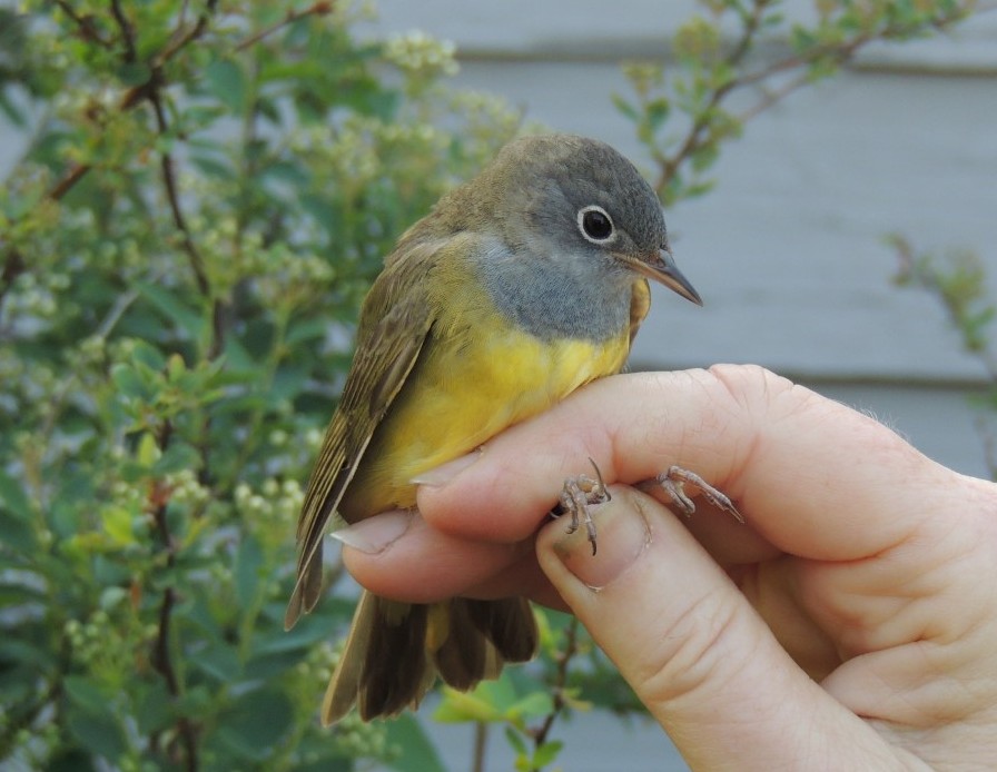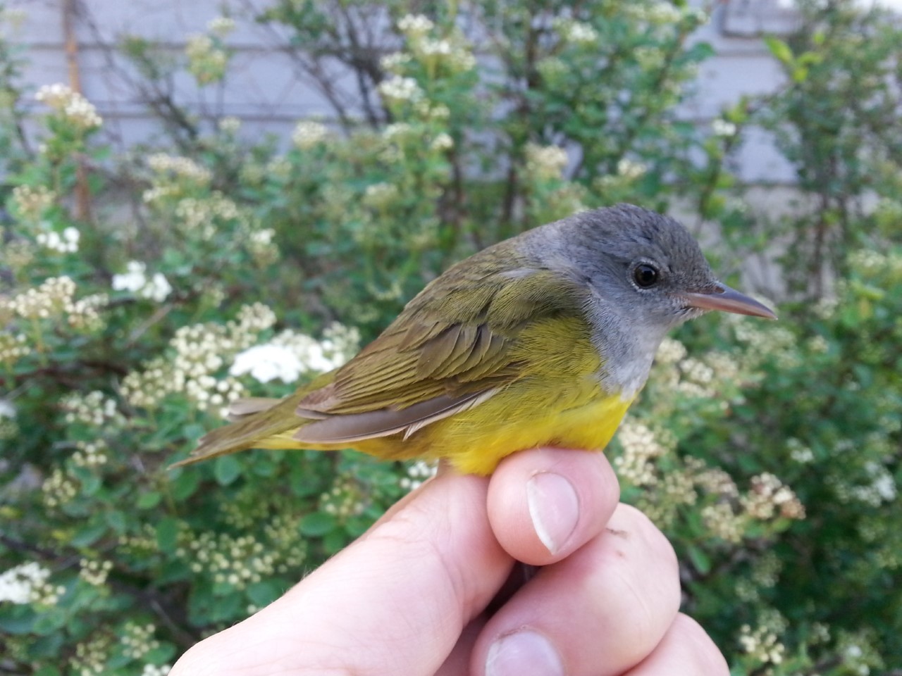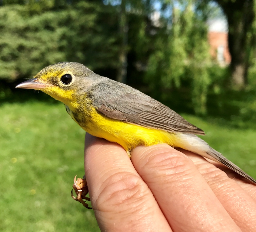 Early morning net rounds are made with anticipation wondering how busy it might be but also, wondering what species we’ll see and what will be new for the season. Today, the first net round was very exciting when I had one male Mourning Warbler that was new for the season and before I finished checking all of the nets, there was a second one, this time a female. Last year, only one was banded in the spring. The weather stayed cool through the morning, and it was a good day with a great diversity of bands handled.