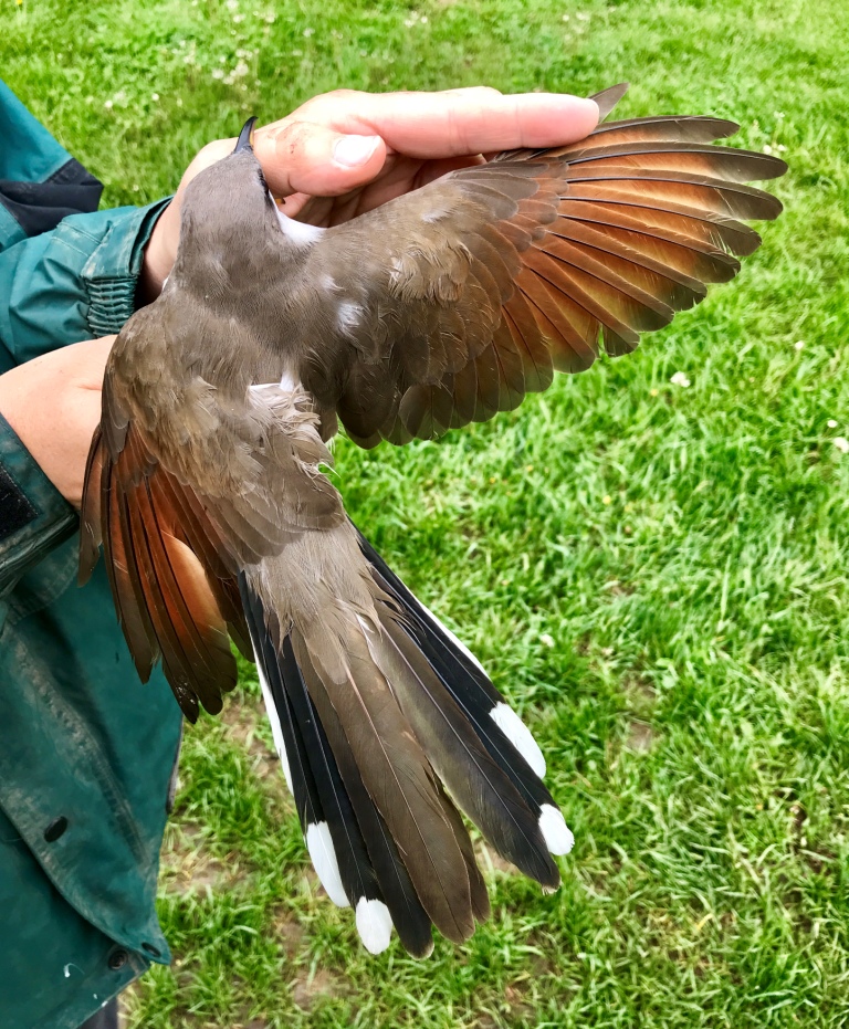 Rain tapered off early and we ran nets through the morning. The most interesting catch was a Killdeer(!) that flew into a net close to some trees. Couldn’t figure out what it was up to…..