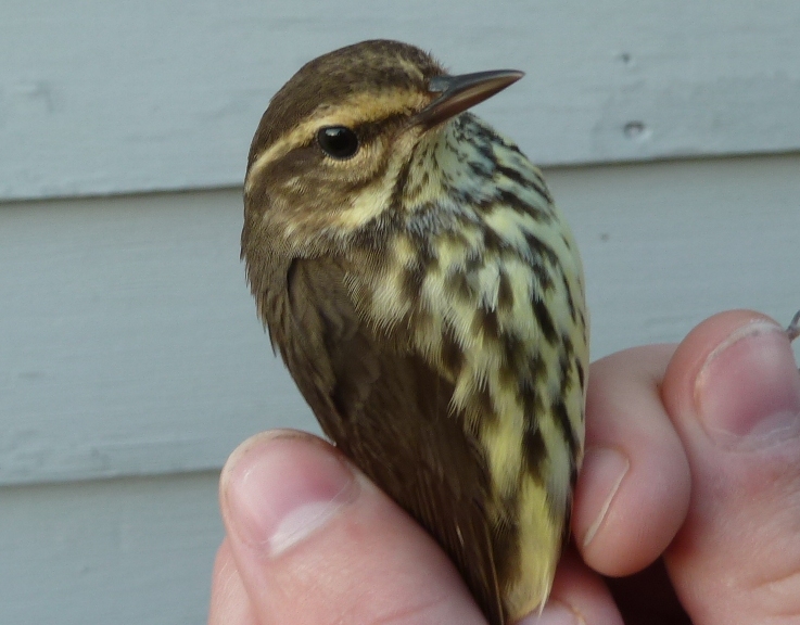 We didn’t catch many birds today but the ones we did catch were a nice mix. They included the first Northern Waterthrush and Orange-crowned Warbler of the year. Northern Waterthrushes are a common nesting bird in Ruthven’s slough forest and are usually an early-returning species but we didn’t encounter our first one until today.