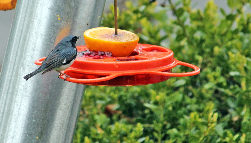 Bob Fotheringham sent some pictures to show that orioles aren’t the only species that can be attracted to feeders with grape jelly and oranges slices: