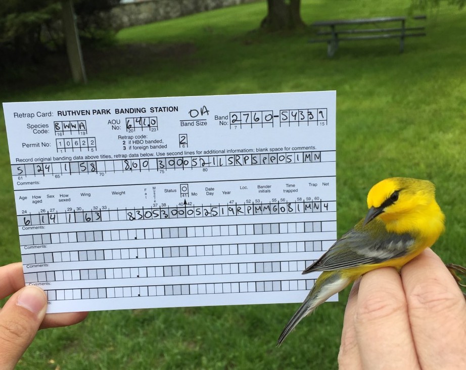 Just think of what that Blue-winged Warbler has seen/experienced on its 5 trips to and from Central America!
