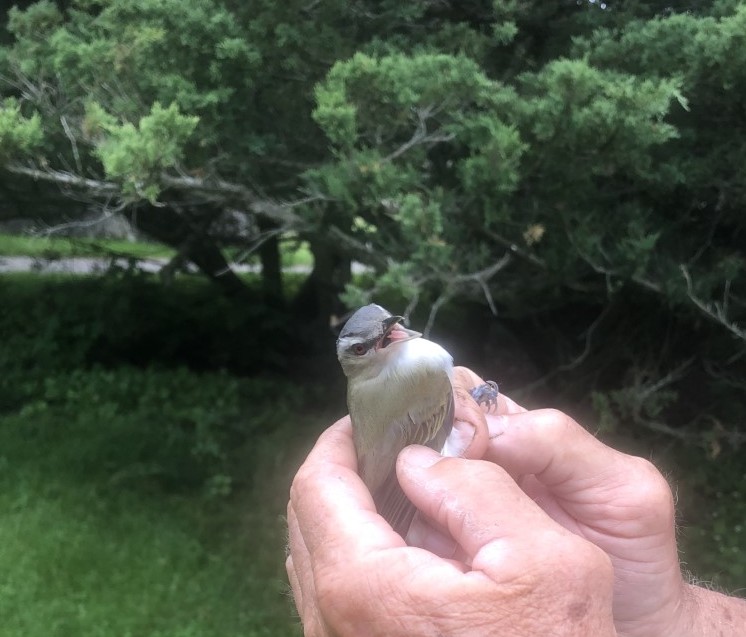 It’s feeling like Summer: heat and almost no new migrants moving through. I had to work hard to squeeze the 14 birds out of the bushes for banding. To make up for this lack, Yellow-billed Cuckoos flitted about the site giving us good views every now and again. And Red-eyed Vireos and Eastern Wood-pewees are calling now in good numbers – another sign that Summer is here.