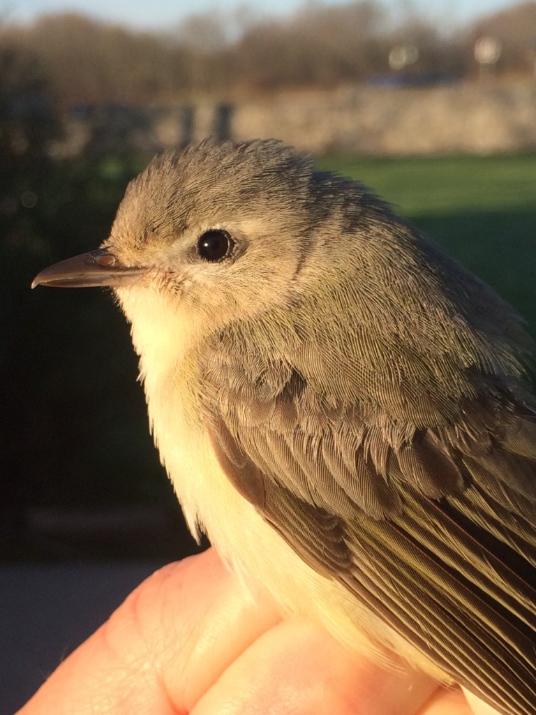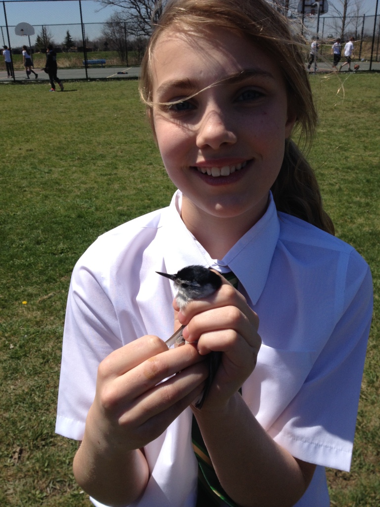 Now this isn’t going to happen often….but we banded more birds (41) at Fern Hill School’s Oakville campus using just 2.5 nets than Nancy and Carol were able to band at Ruthven (31) using 19 nets. The math teacher, Mr. Hincks, put up a feeder array 2 months ago and it has been drawing in large numbers of “feeder birds” and since Katherine and I band there only once a week they don’t get “net smart” and we can catch them readily….if they’re there. And they were this morning. Interestingly almost half of the Ruthven total was made up of American Goldfinches, which are hitting the feeders hard as well.