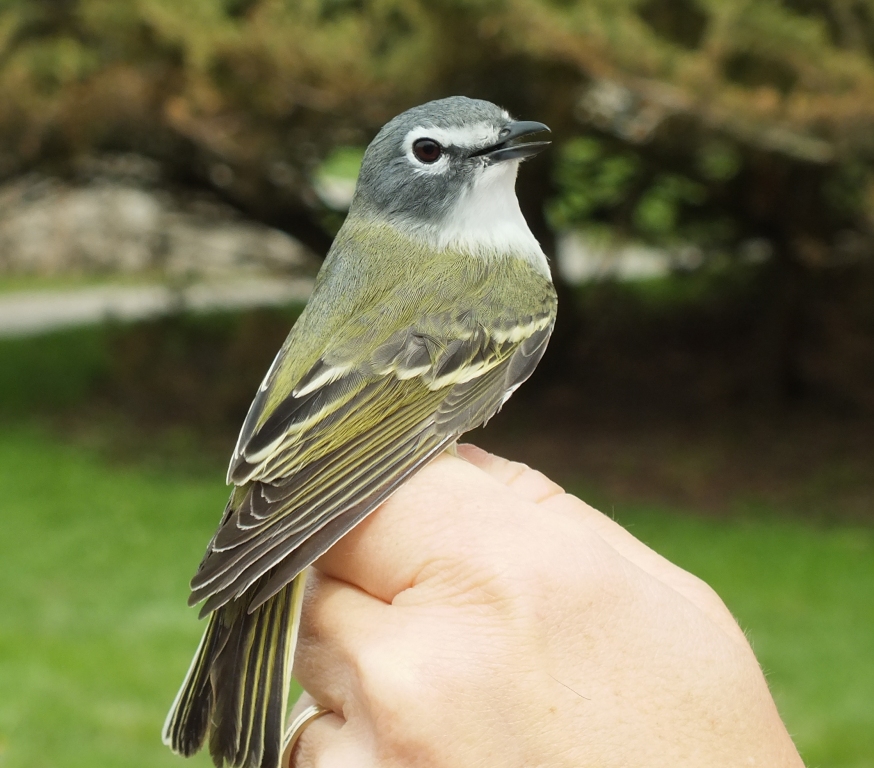Yesterday, I sensed a change was in the wind and today it just came bursting out, making up for a long, cold Spring. The picnic table just outside the banding lab was the place to be as it gave front row seats to a show of Warblers that were taking advantage of the many insects haunting the opening leaves. At any one time throughout the morning you could find 6 different species of warblers in the tree as well as both orioles, kinglets, Rose-breasted Grosbeaks and Cedar Waxwings. Each net round was exciting as you just didn’t know what you might find. And although we weren’t overwhelmed with birds we had our biggest day of the year so far both in terms of numbers banded (55) and species banded (24).