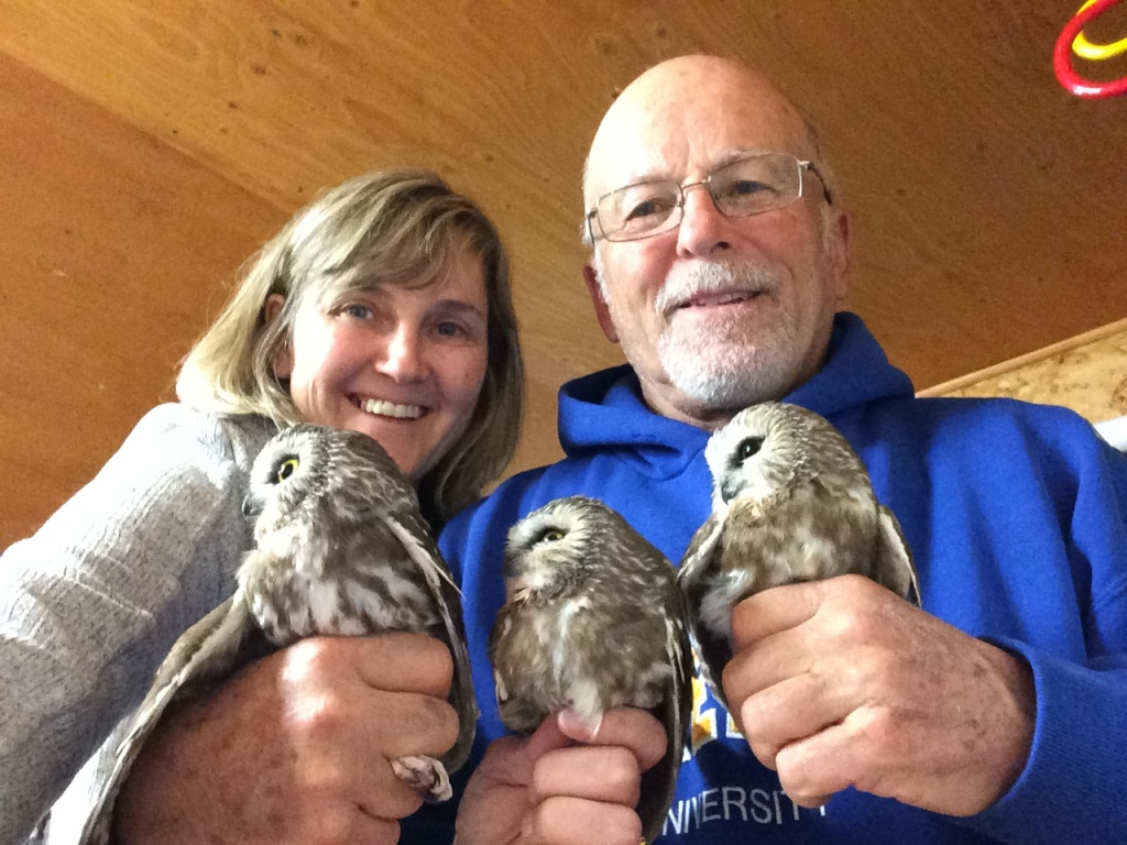 We caught two on the first net round! One was a recapture of a bird that we banded a week ago. So we we tied the record. We decided to give it another go…..On the second round we caught 3 owls!! The first was a recapture of a bird that had been banded in March, 2015 in Cheboygen Michigan! And the other two were new – numbers 89 and 90….a new record!!