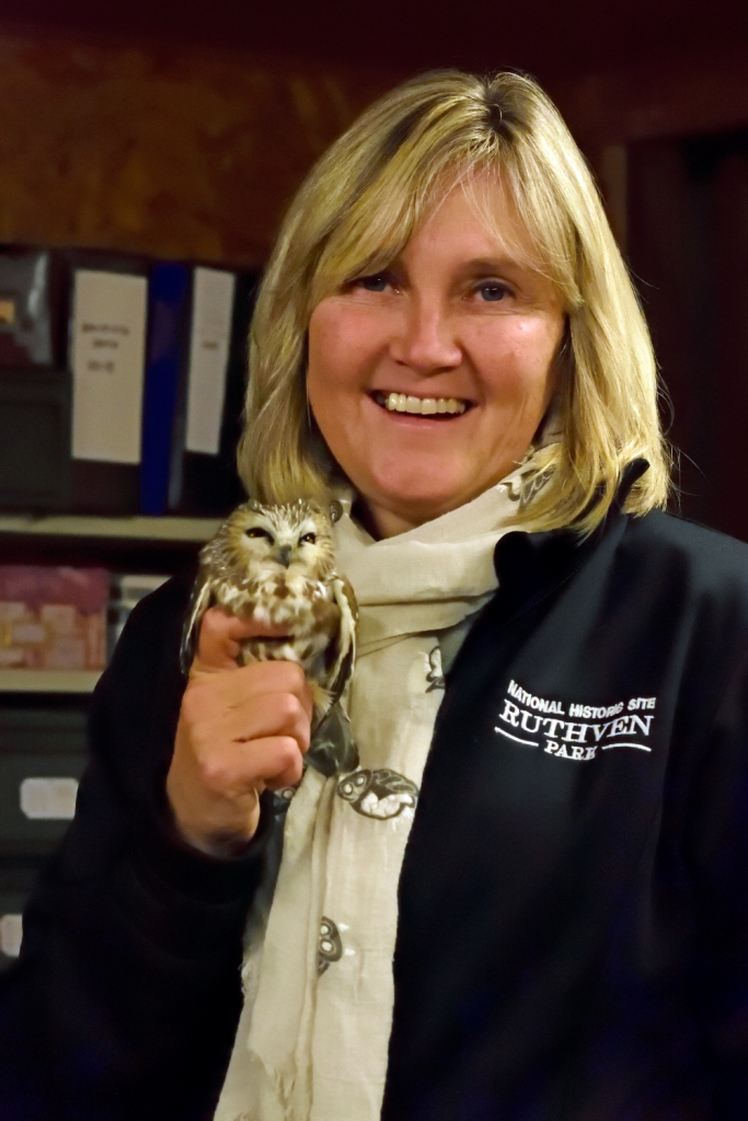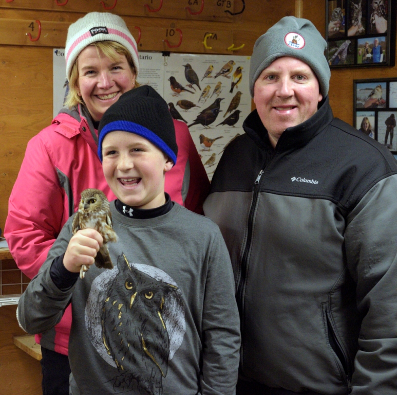 We were lucky Saturday night – the rain that was listed as a good possibility earlier in the day never materialized so we set out lure tapes and opened nets for Saw-whet Owls….and got lucky, catching two! Not sure why they have such appeal….but they certainly do!