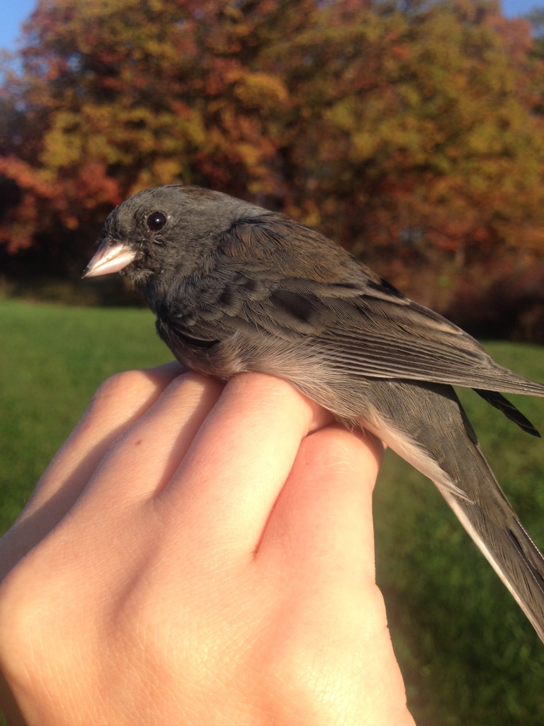 We also recaptured a beautiful female Slate Coloured Junco-first banded in 2013! It is so valuable to recapture birds so we can study their movements and migration habits, aging process, and understand how important it is to conserve bird habitats. Just imagine the natural and man made challenges she goes through-and survives-each year on her long travels.