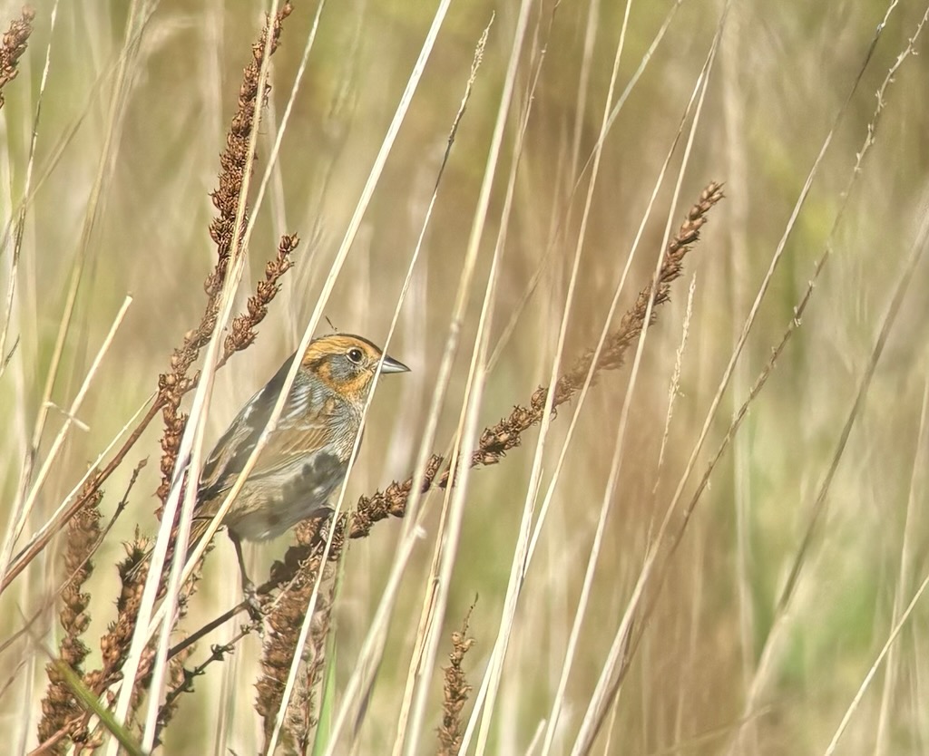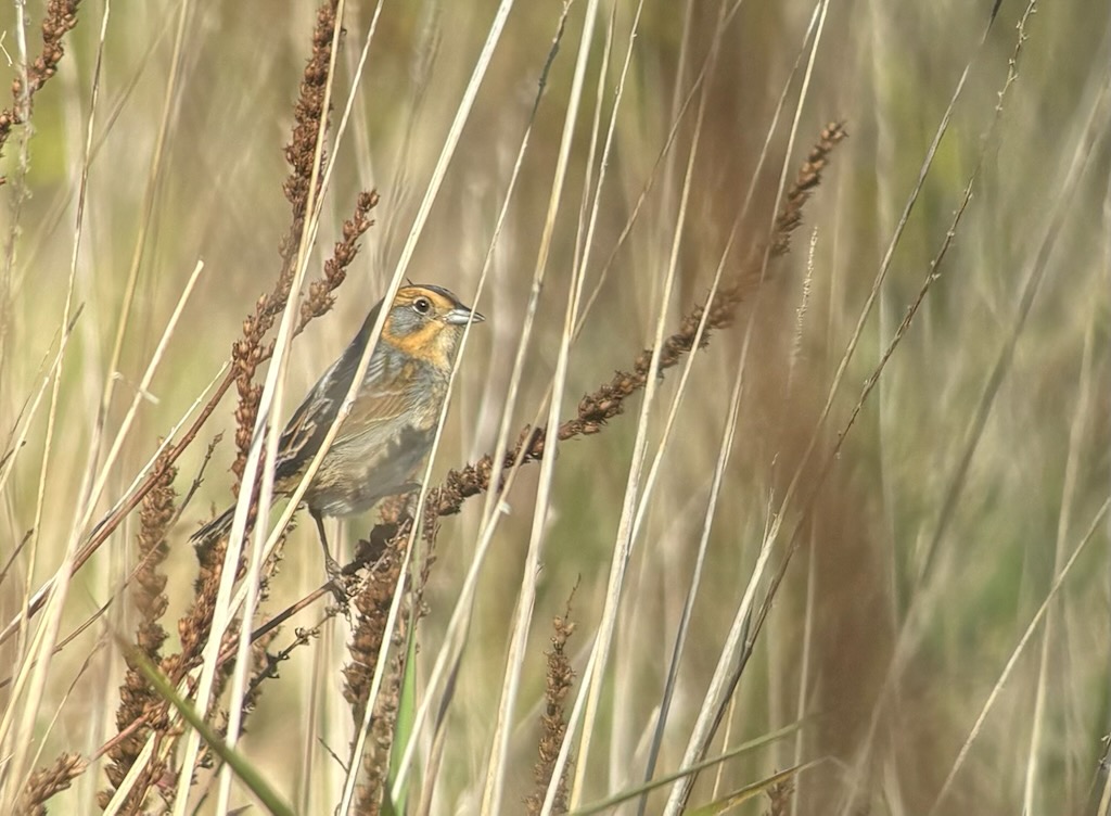 The BIG surprise today was the discovery of a Nelson’s Sparrow by Sam Lewis. He was going down to the River to do a count when he came across it just past the wetland along the trail. It’s a first for us. It would be nice to be able to spend more time just sitting and watching in that wild area between the wetland and the river. Who knows what else might turn up?