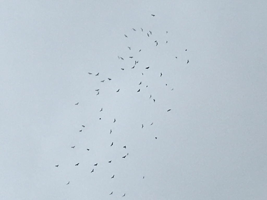 Yesterday was pretty nasty weather-wise so I was very surprised to see a large ‘kettle’ of Turkey Vultures forming over the parking lot. The birds rose until they began to disappear into the low ceiling and then drifted off to the SW.