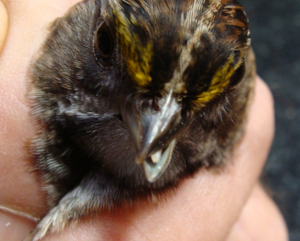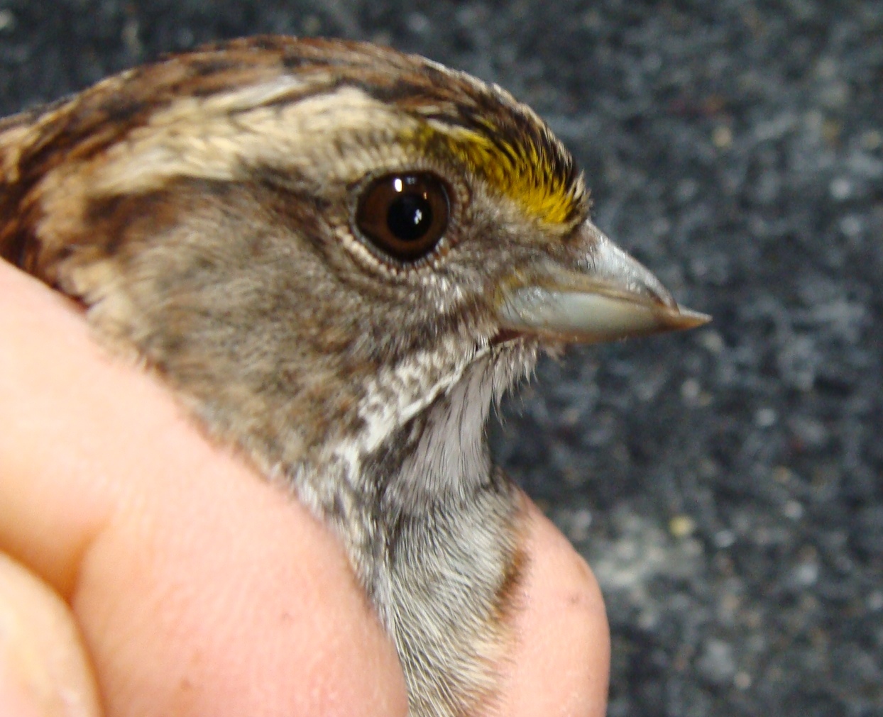 Every now and again we catch birds that have some sort of physical anomaly. Check out the bill on this White-throated Sparrow. Despite the much shorter upper mandible the bird seemed to be in quite good shape with lots of fat and relatively heavy.