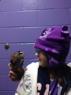 I tried to figure out what made this such a good night. A number of variables run through one’s head: temperature, wind speed and direction, cloud cover, phase of the moon, ambient light and noise, net placements, audio lure placements. So many things to consider. But the answer was much simpler – mojo. Calleigh, a kindergarten student (but very keen bird person) was wearing her owl pyjamas (which she wouldn’t let her mother put on her earlier in the week, saving them for this special occasion) and she was carrying her special owl stuffie. Powerful mojo indeed. There you go, how could Mother Nature deny these efforts? You see….sometimes it’s a simple answer and it’s staring you right in the face.