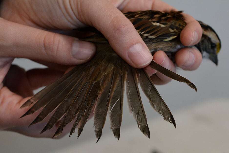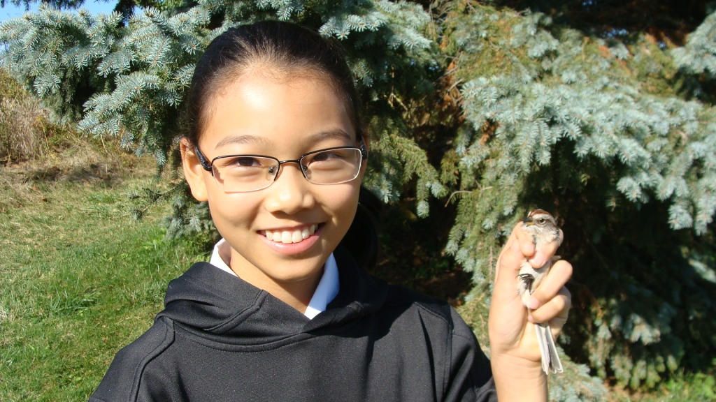 We had a full day – banding passerines during the day and trying for owls in the evening. It’s amazing to me that we’re catching sooo many goldfinches at Ruthven but I saw only 3 at the school!? And the 2 White-throated Sparrows were the first I’ve seen at Fern Hill this Fall while at Ruthven we’ve banded well over 300. But we do have one thing in common: NO Northern Saw-whet Owls. We made 3 rounds…..3 futile rounds with nothing to show for them.