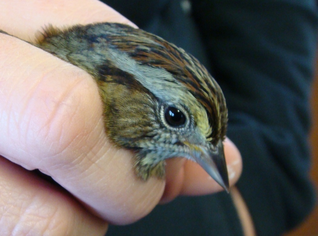 We’ve been through a good run of warblers; are just finishing off the sparrows; and currently catching goldfinches and juncos. Like any year there have been some noteable ups and downs; e.g., Myrtle Warbler #’s are well below the long-term average (95 vs 307) as are Blackpoll Warblers (28 vs 62) but Red-eyed Vireos hit record levels (157 vs 57). White-throated Sparrow #’s are well above average (317 vs 221) whereas White-crowned Sparrows are quite low (4 vs 16) and we have yet to catch a Fox Sparrow. Cedar Waxwings, which have become one of our “bread and butter” Fall species, are lagging (158 vs 230) despite a good berry/grape crop. And so it goes….. But what has happened to Northern Saw-whet Owls!? So far we’ve banded only 6 (as opposed to the 81 we did last Fall). We’re looking into it – most stations have reported lower numbers of this irruptive species.