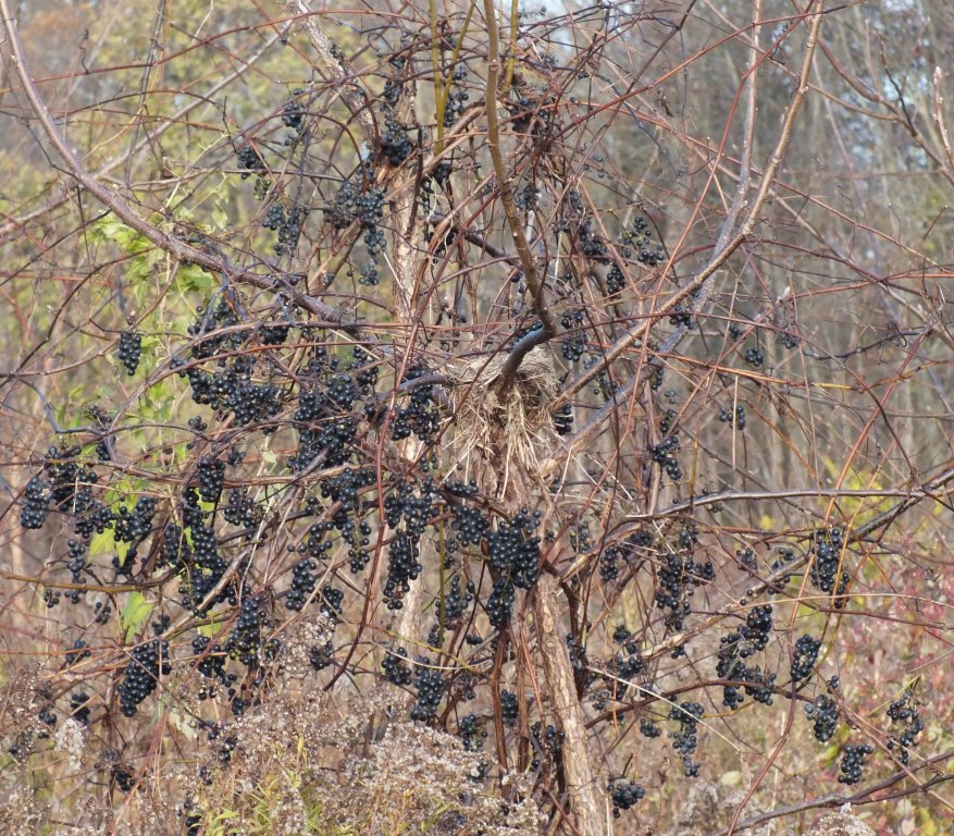 With most of the leaves gone, I was also struck by the numerous wild grape clusters that remain and are now visible. There will be lots of food for overwintering birds this winter! It would take a fabled flock of Passenger Pigeons to eat all of them now.
