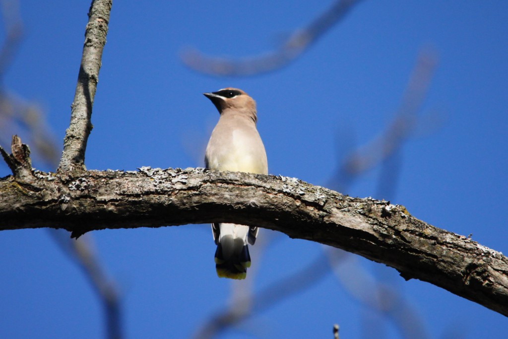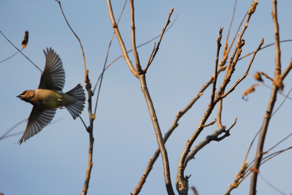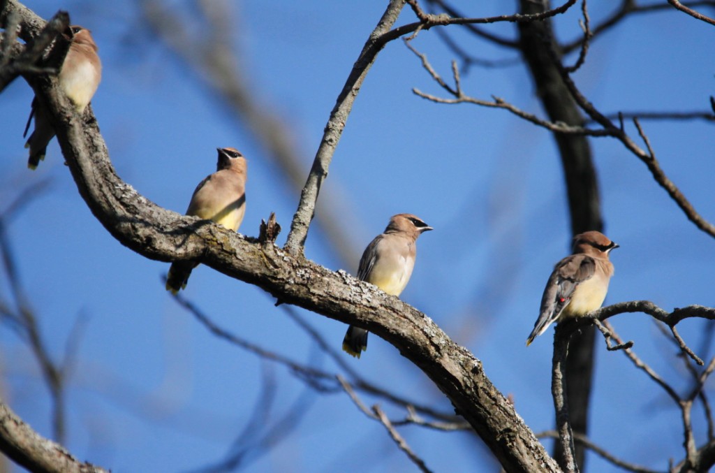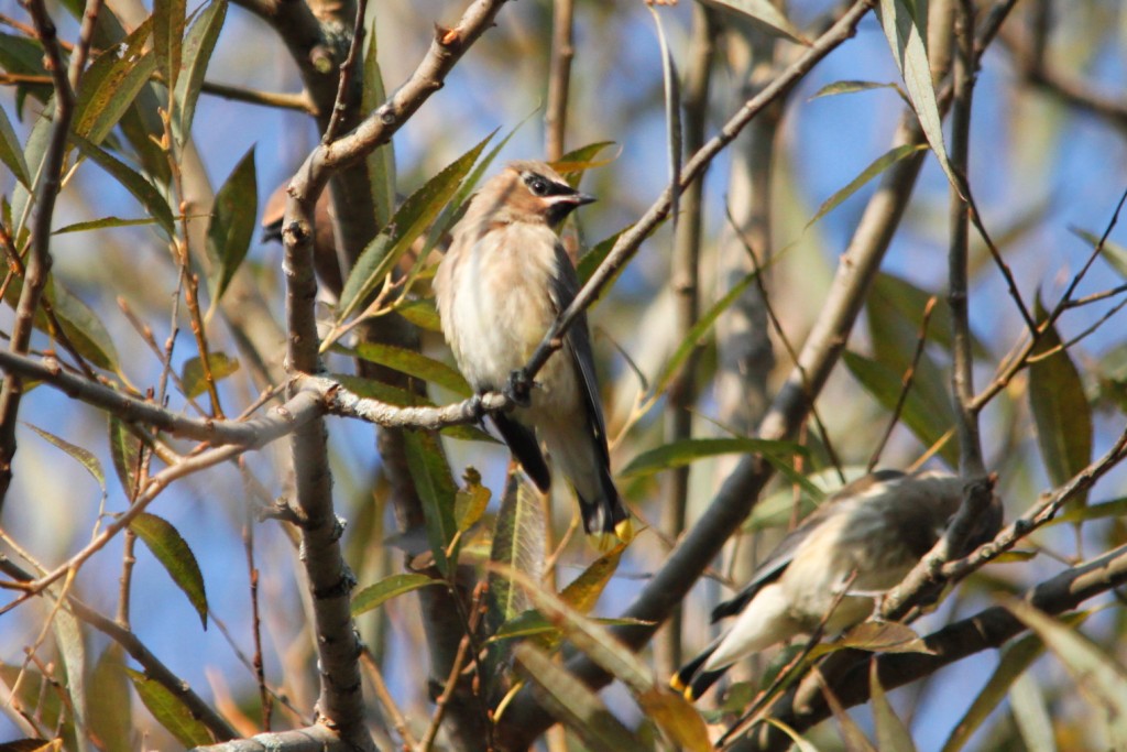 A lovely day yesterday was followed by heavy rain during the night and showers throughout most of today. Winter resident juncos and tree sparrows made up the bulk of the 67 birds caught yesterday. We banded 4 birds today after we opened 2 nets and a couple of traps for an hour during a lull in the rain. This ran our banding total for October up to 3,201 birds – a new record. Over a third of this total was comprised of Cedar Waxwings!! The totals for both October and waxwings are records.