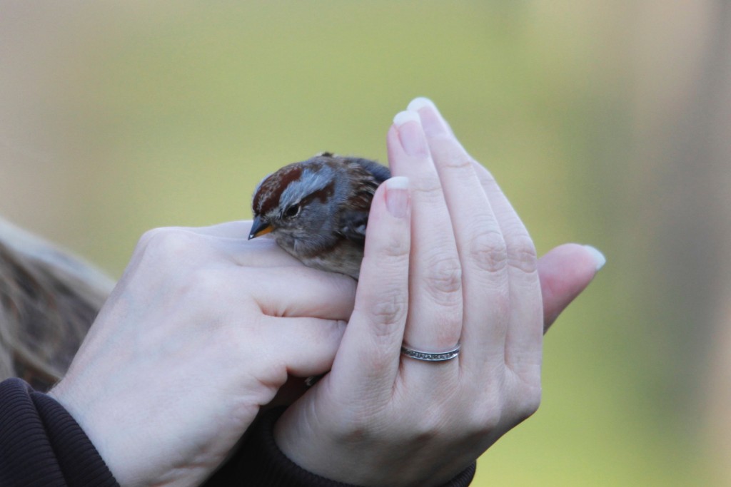 -an American Tree Sparrow, originally banded in March 2011, was recaught today; it was last caught in February of 2012. It has remained true to Ruthven as its Winter home.