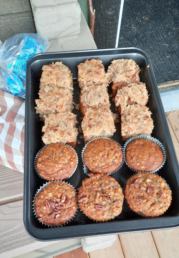 This last week has seen a move to cold nights and generally windy days with periods of precipitation. Three mornings in a row the nets were covered with frost and the poles had a veneer of ice making opening a slow process. The birds didn’t get moving until the sun was well above the horizon and throwing a little heat. On such days, baked goods provide energy and lift spirits: