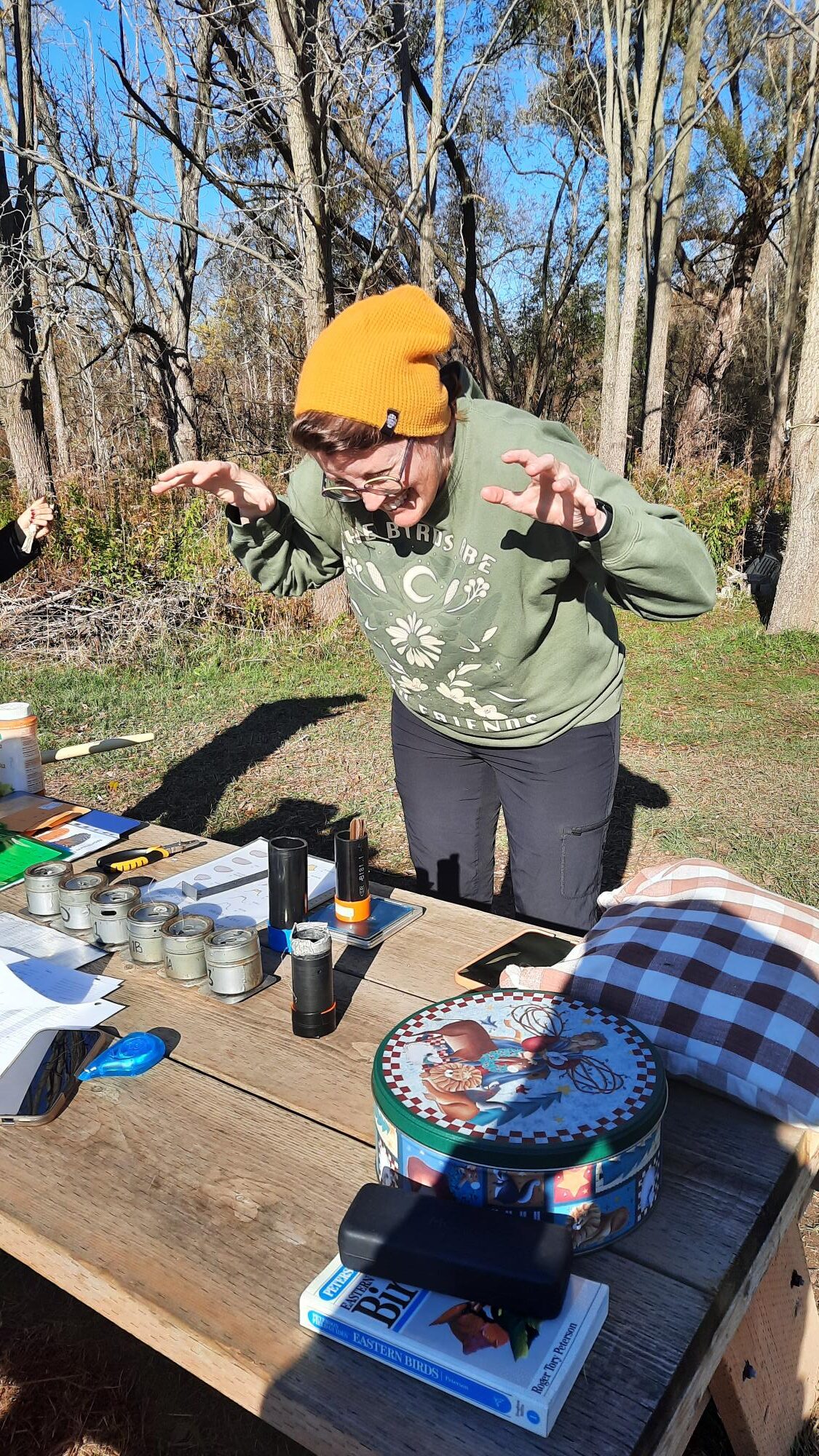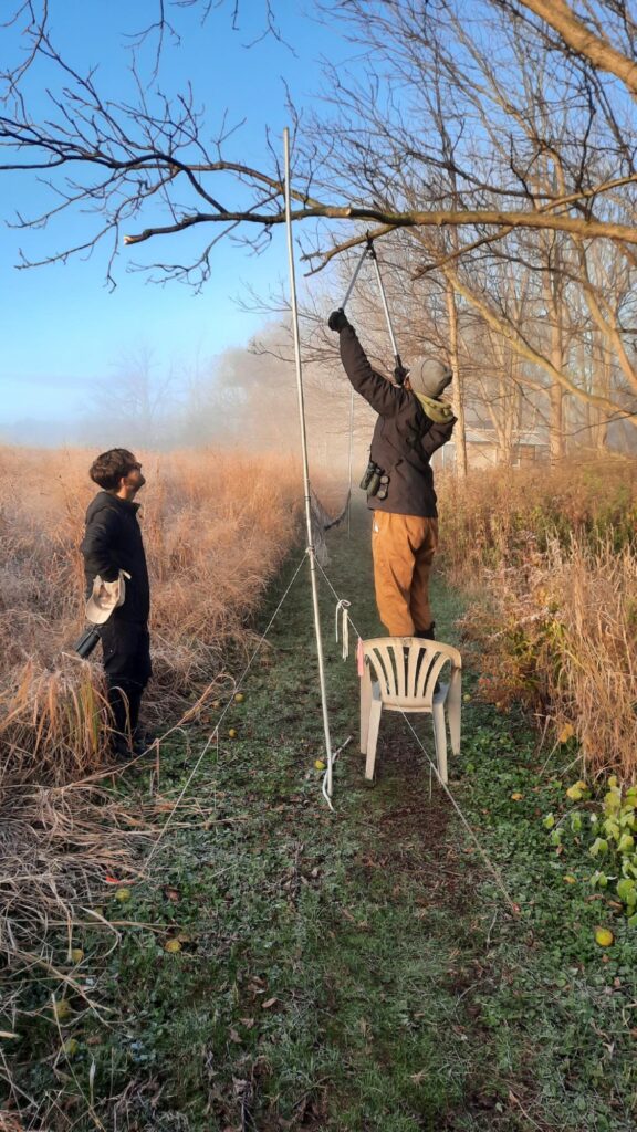 The night of the 25th must have paid witness to a massive leaving of “our” birds, lifting off and heading south. I’m sure they could sense the change in the weather that was coming. So we went from handling 100 birds (36 banded; 64 retraps) to a mere 29.