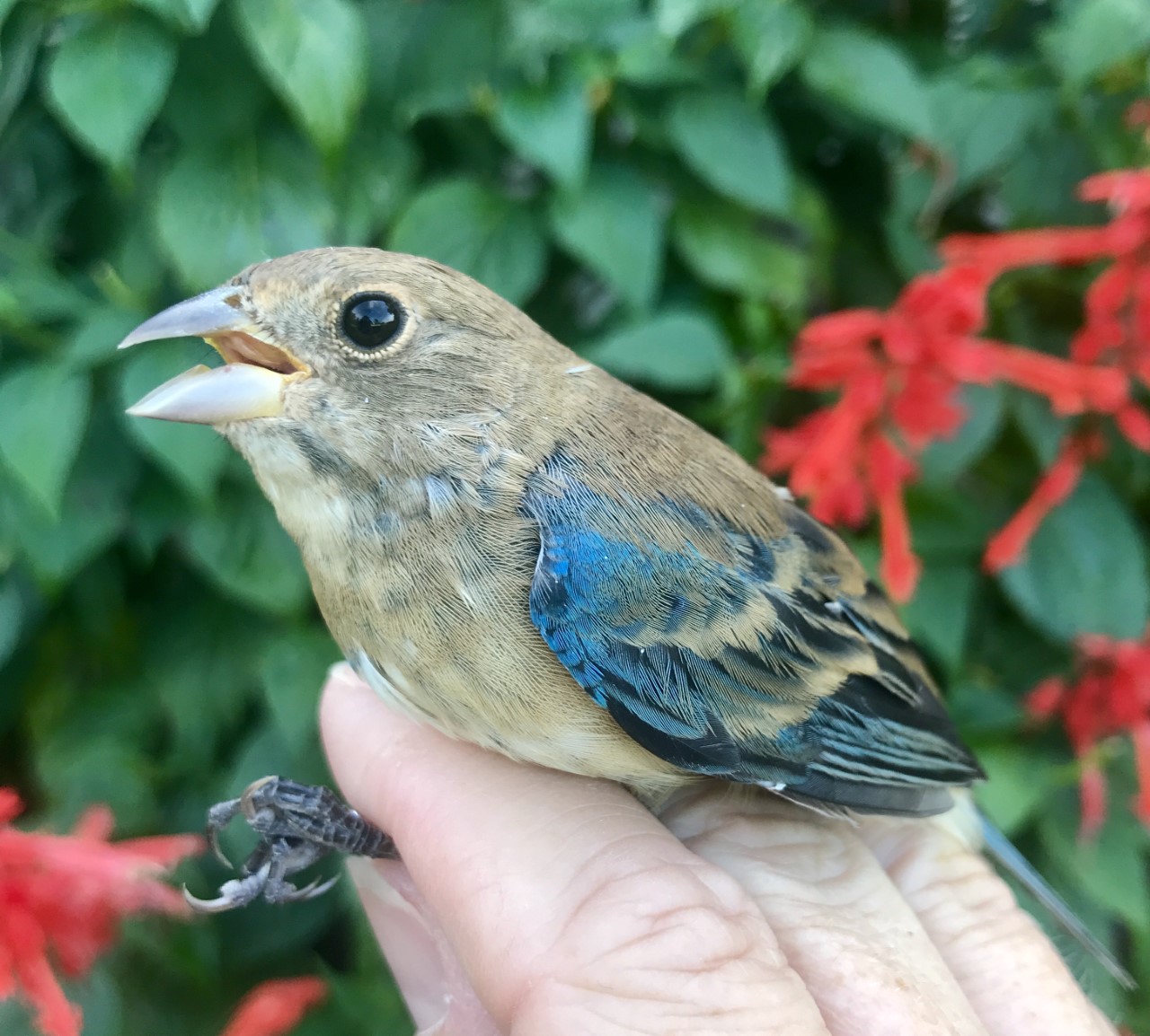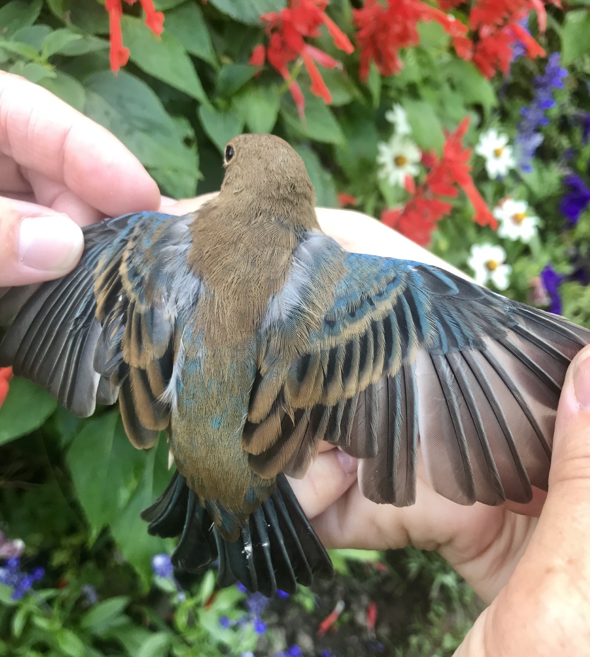 The ‘dog days of summer’ continue to impact our weather and subsequently, the activity of banding dries up pretty quick by mid-morning. The early morning hours are pleasant, and the first couple net rounds are the most productive. A nice mix of species today, but the banding totals continue to be low.